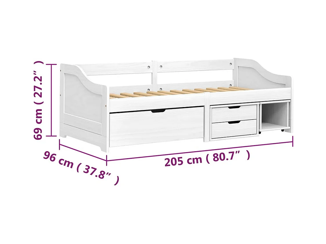 Slaapbank met 2 lades IRUN 90x200 cm massief grenenhout wit