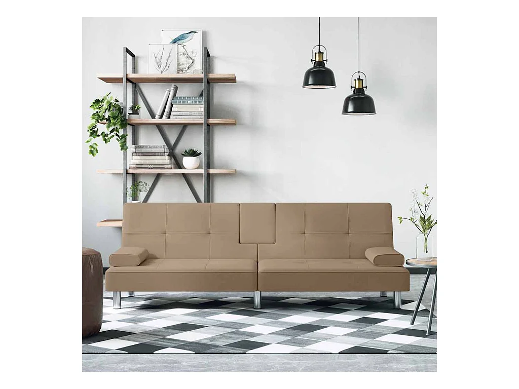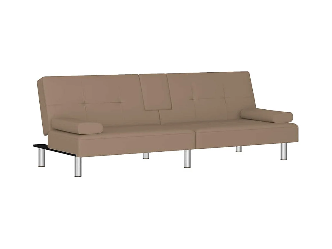 Slaapbank met bekerhouders kunstleer cappuccinokleurig