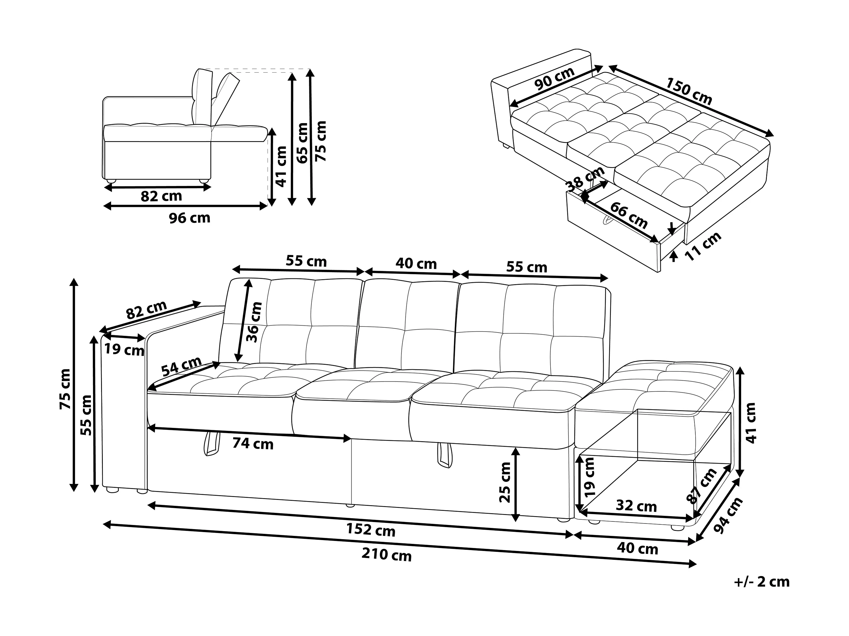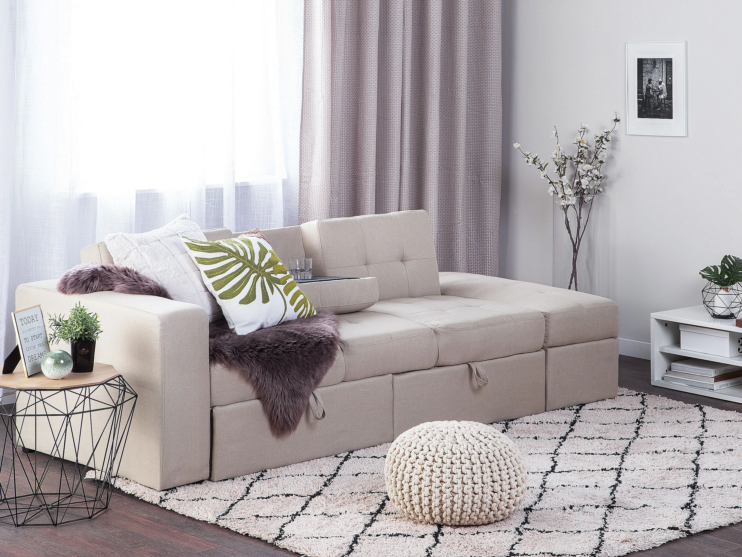 Slaapbank FALSTER Stof Beige met opbergruimte 3-zitter