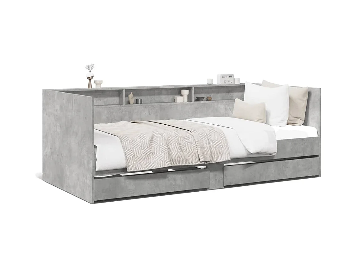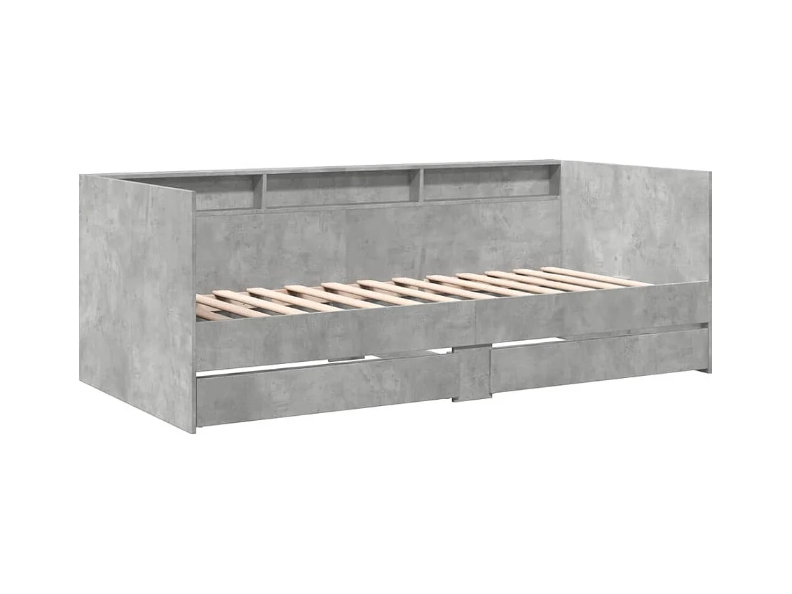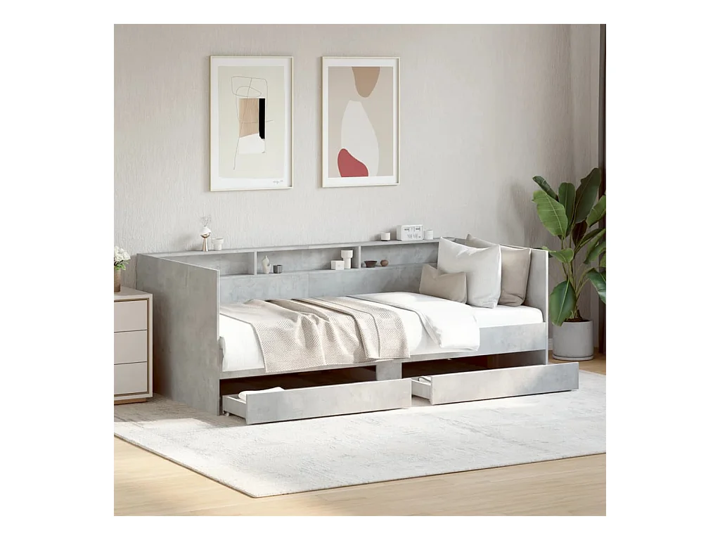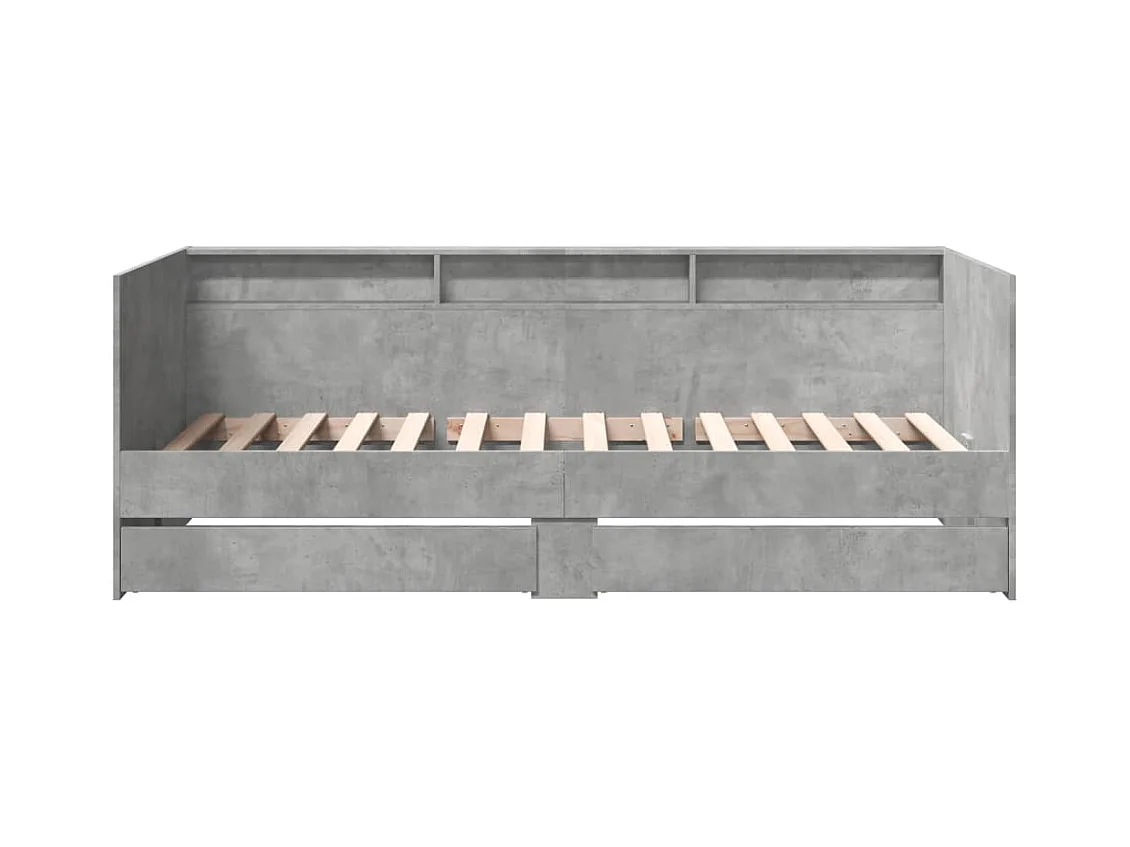 Slaapbank met lades 100x200 cm bewerkt hout betongrijs BE424581