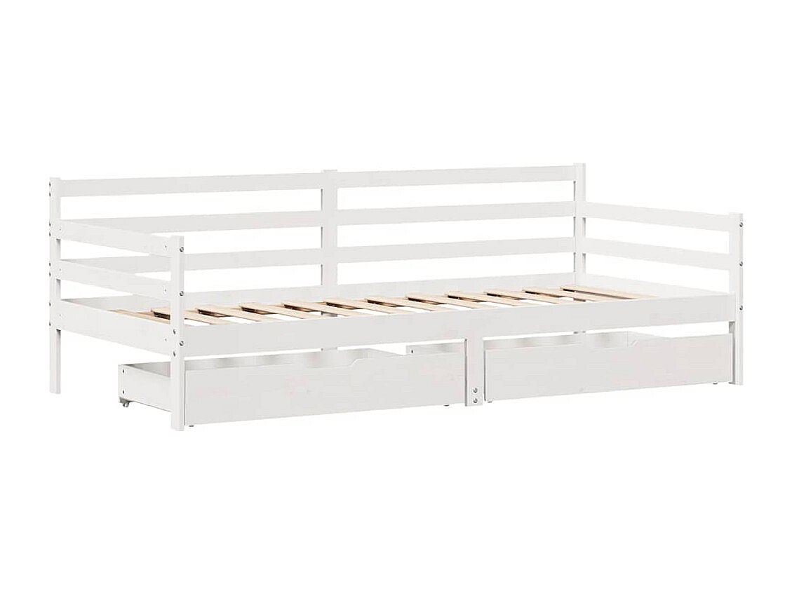 Slaapbank met lades 90x190 cm massief grenenhout wit