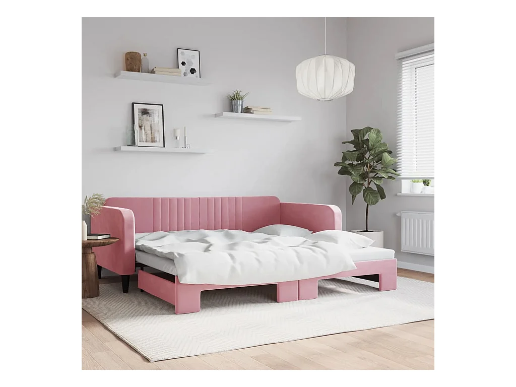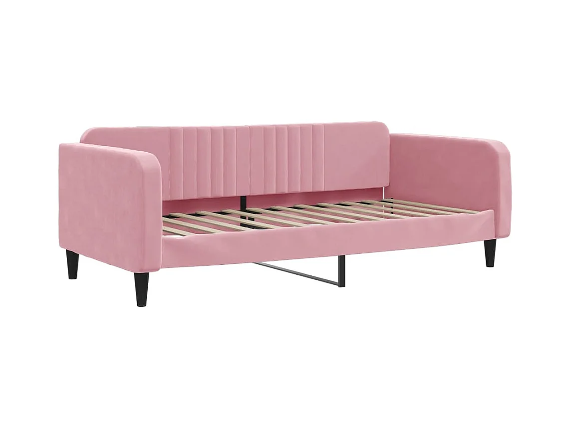 Slaapbank onderschuifbed en matrassen 100x200 cm fluweel roze