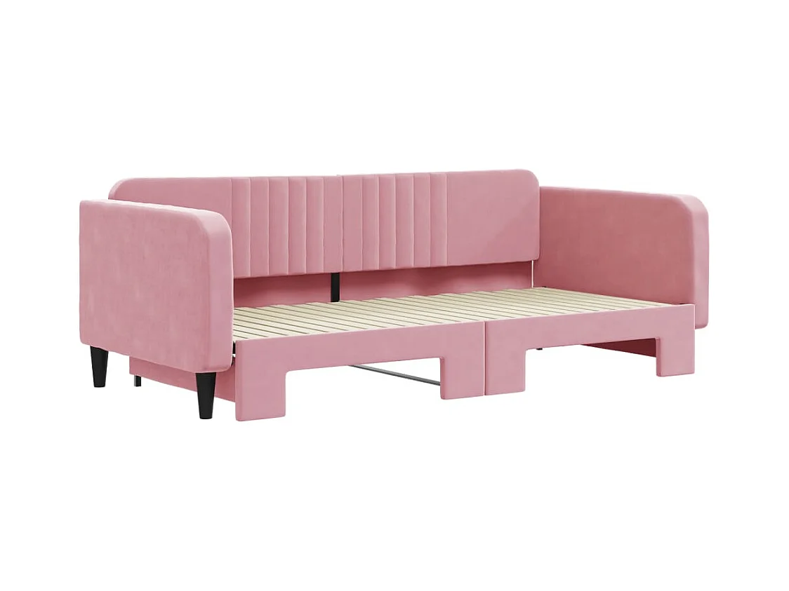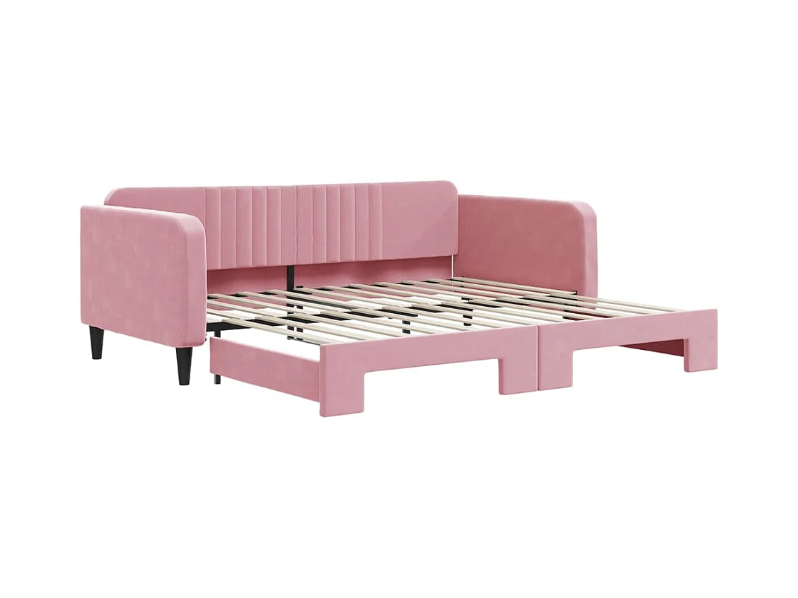 Slaapbank met onderschuifbed 100x200 cm fluweel roze