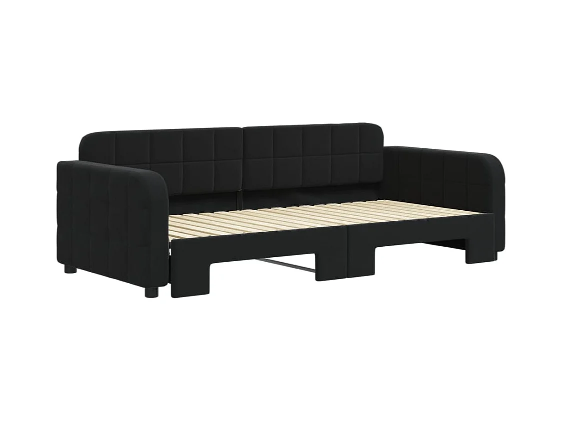 Slaapbank onderschuifbed en matrassen 90x190 cm fluweel zwart