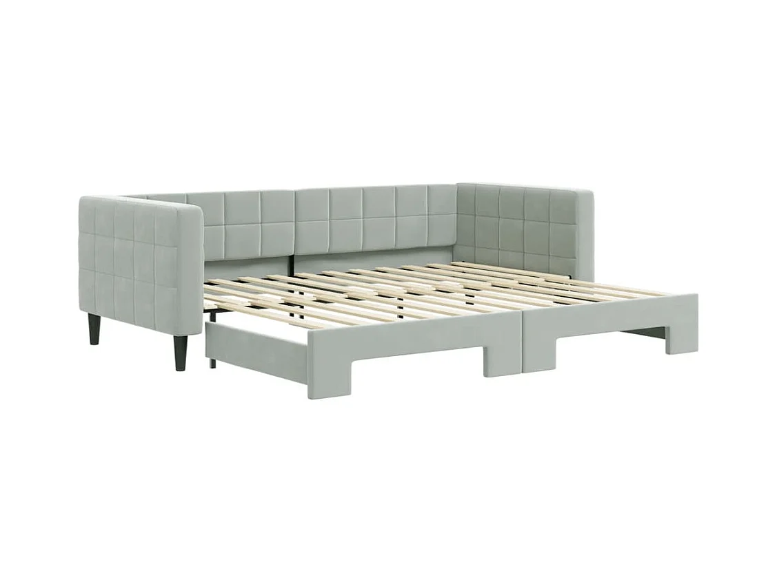 90x200cm gestoffeerd uitschuifbed - uitschuifbare slaapbank, lattenbodem, jeugdbedden, kinderbedden, extra bedden, fluweel - Grijs