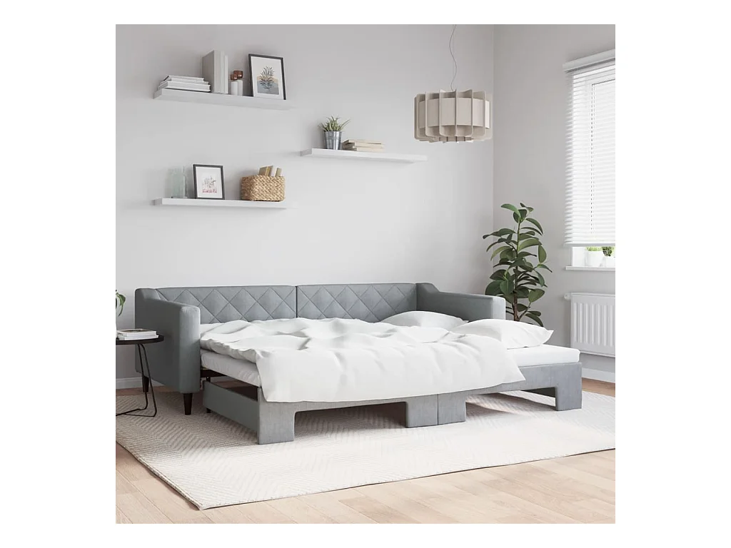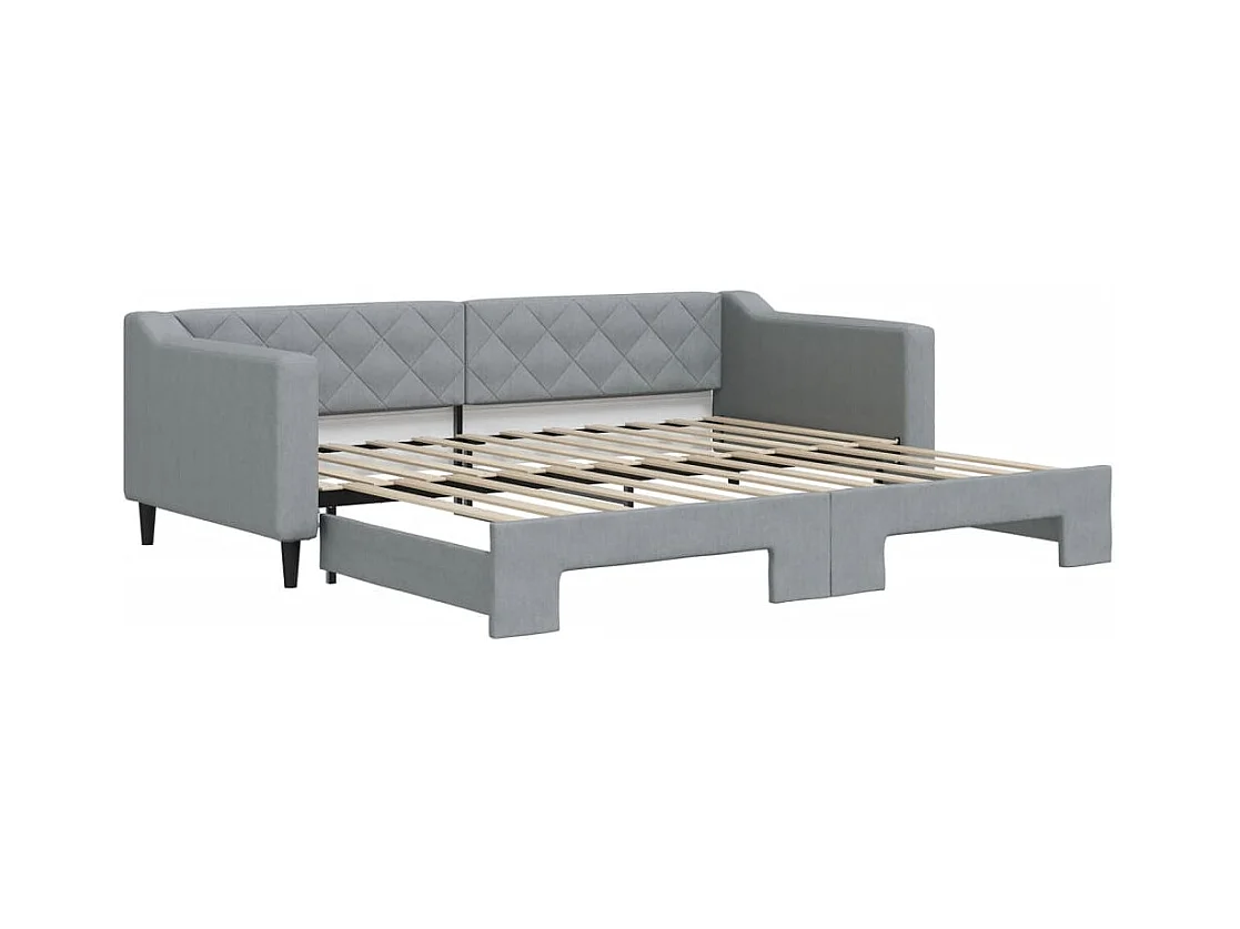 Slaapbank met onderschuifbed 90x200 cm stof lichtgrijs