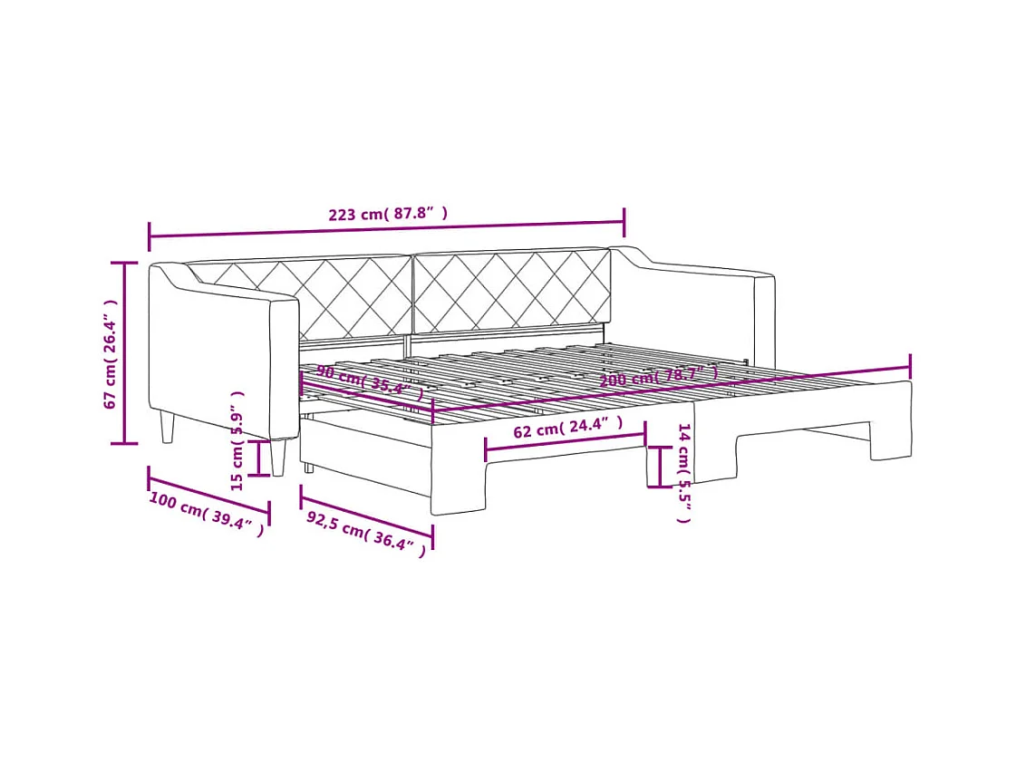 Slaapbank met onderschuifbed 90x200 cm stof donkergrijs