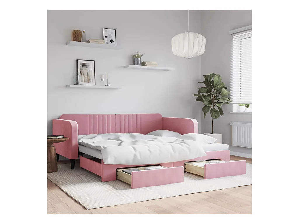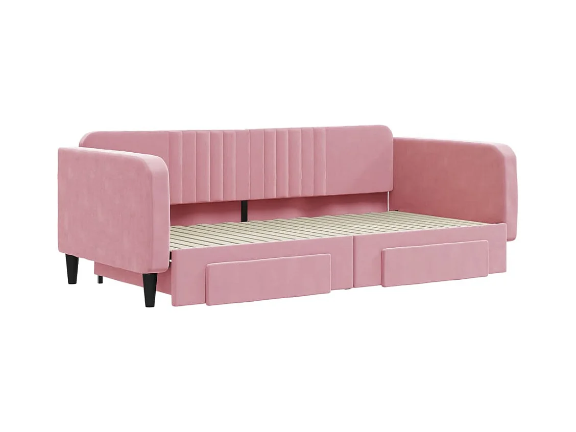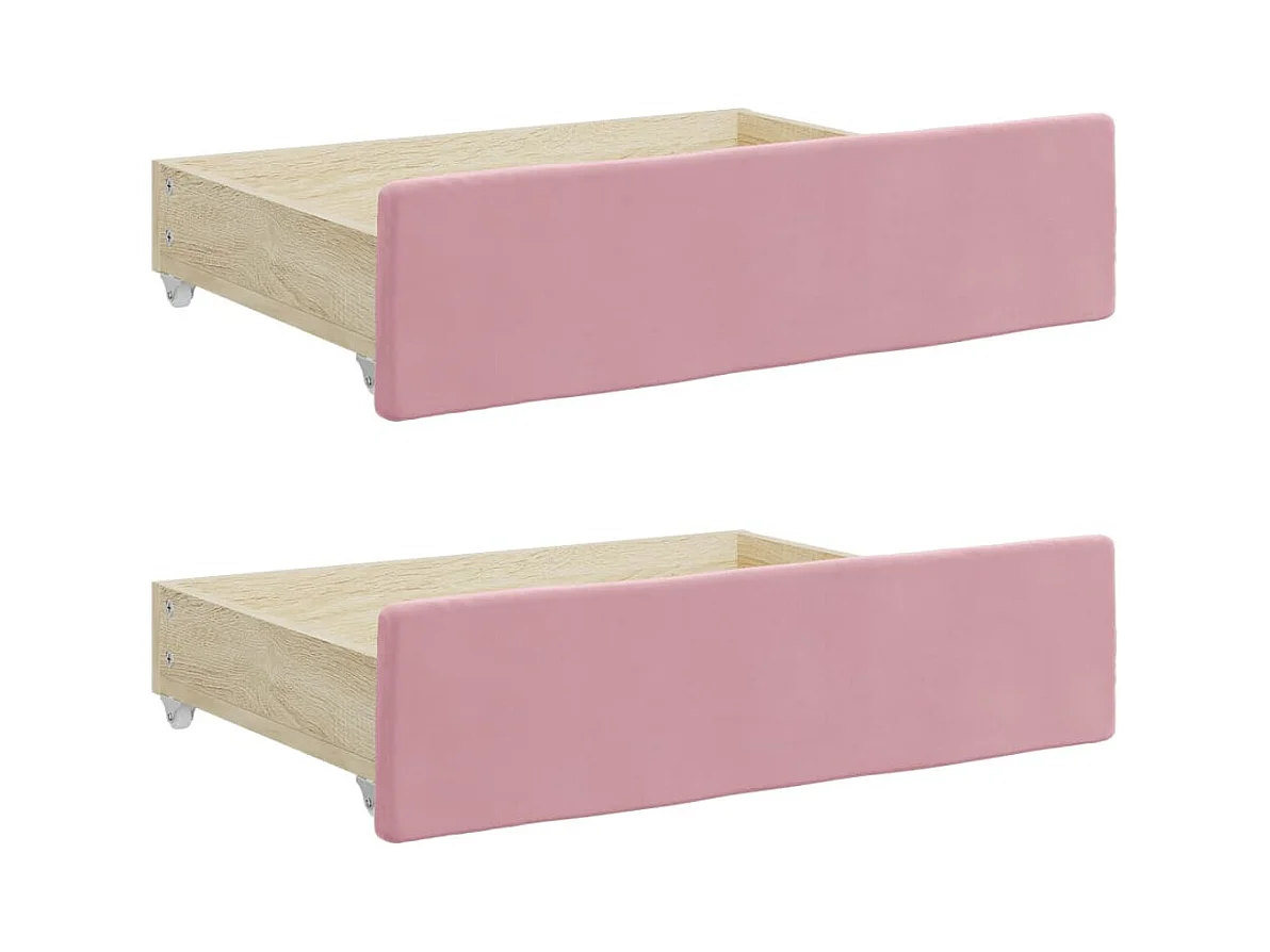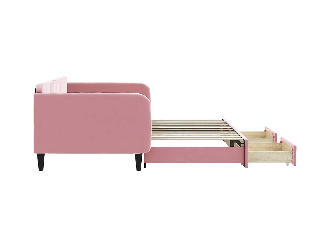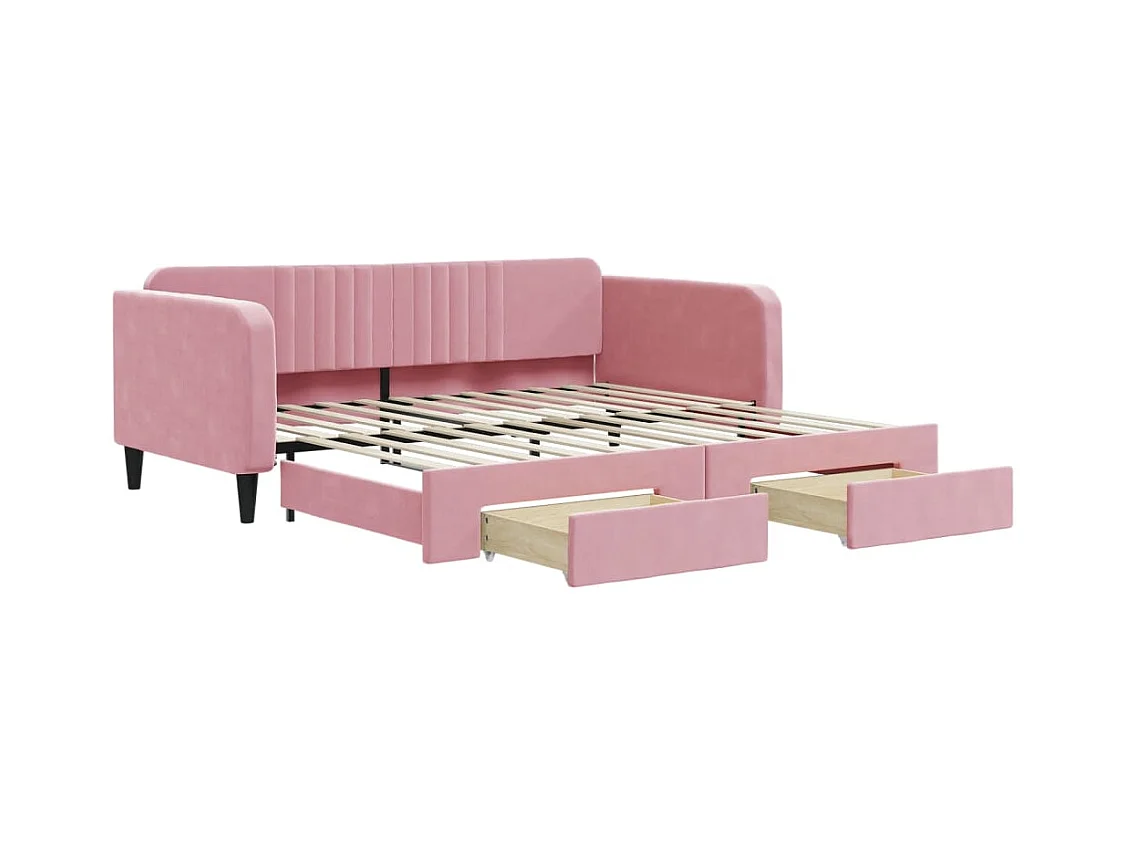 Slaapbank met onderschuifbed en lades 100x200 cm fluweel roze