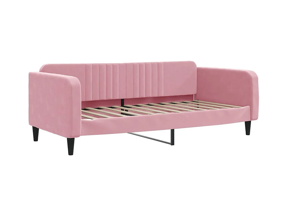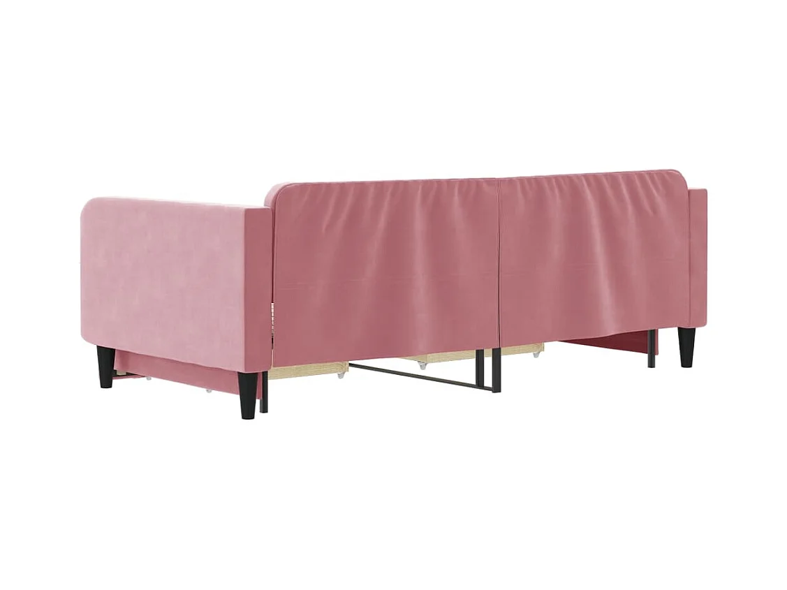 Slaapbank onderschuifbed en matrassen 100x200 cm fluweel roze