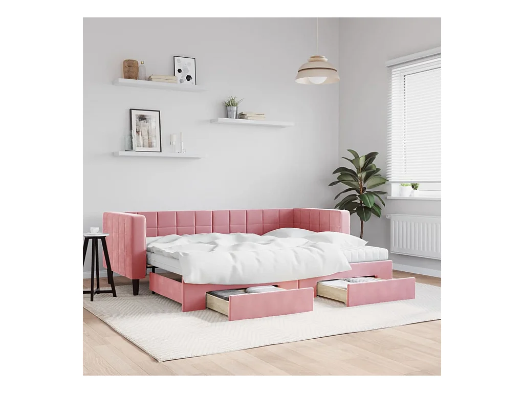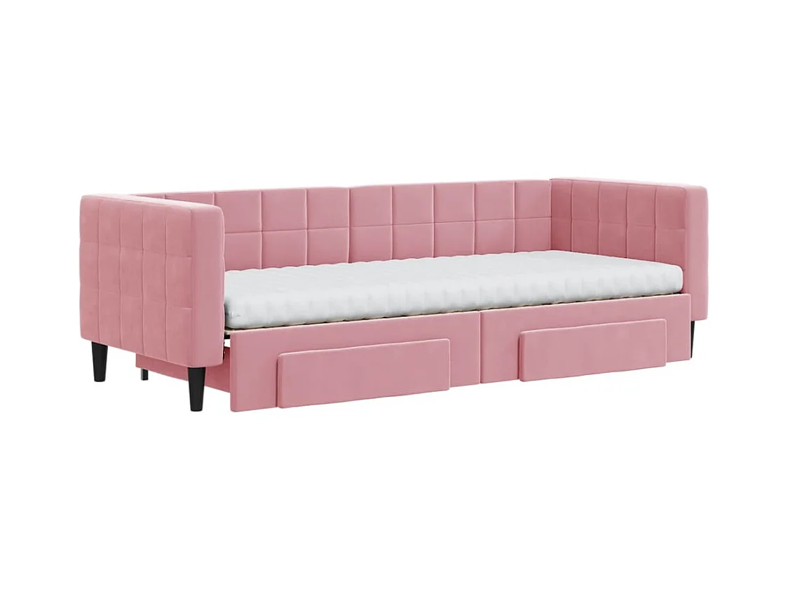 Slaapbank met onderschuifbed en lades 80x200 cm fluweel roze