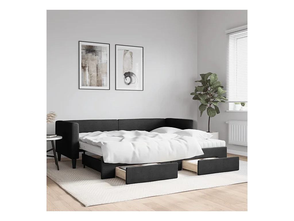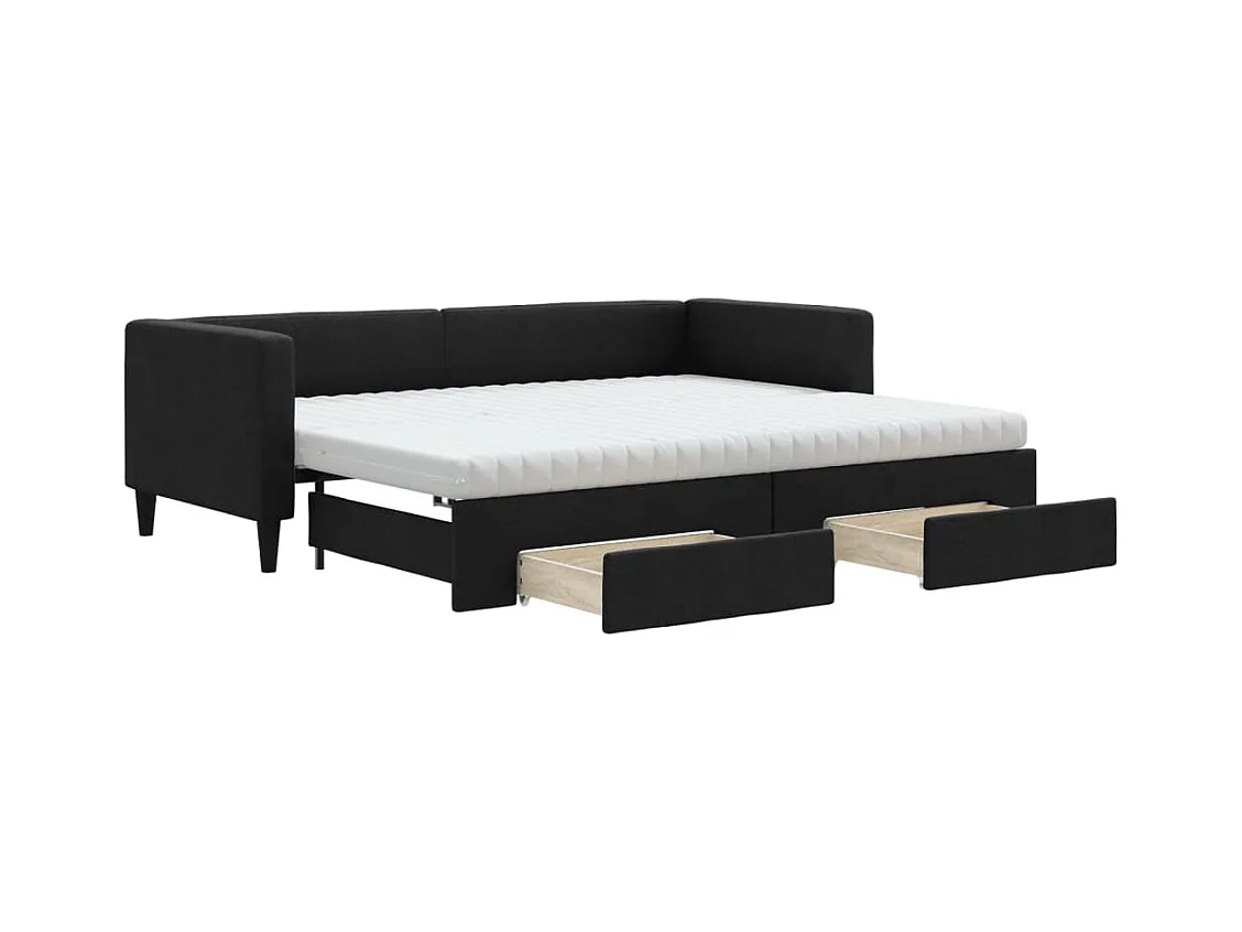 Slaapbank met onderschuifbed en lades 80x200 cm stof zwart