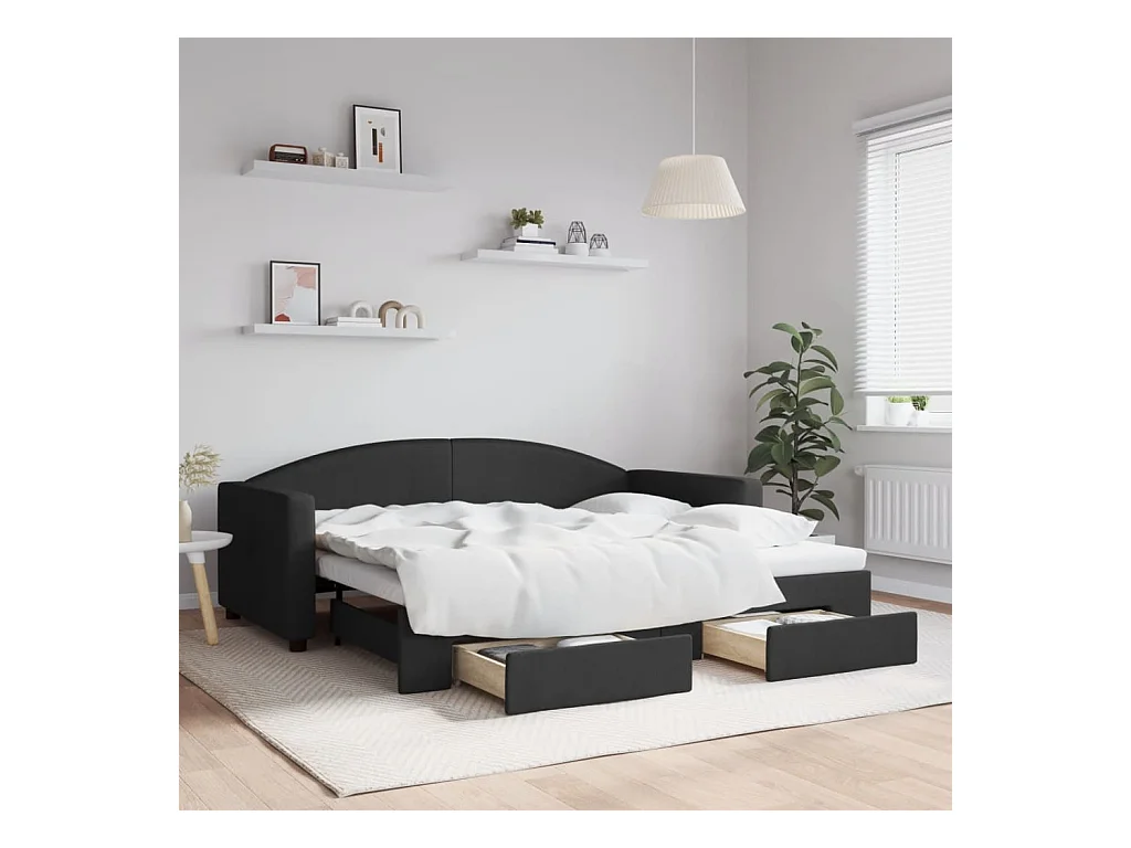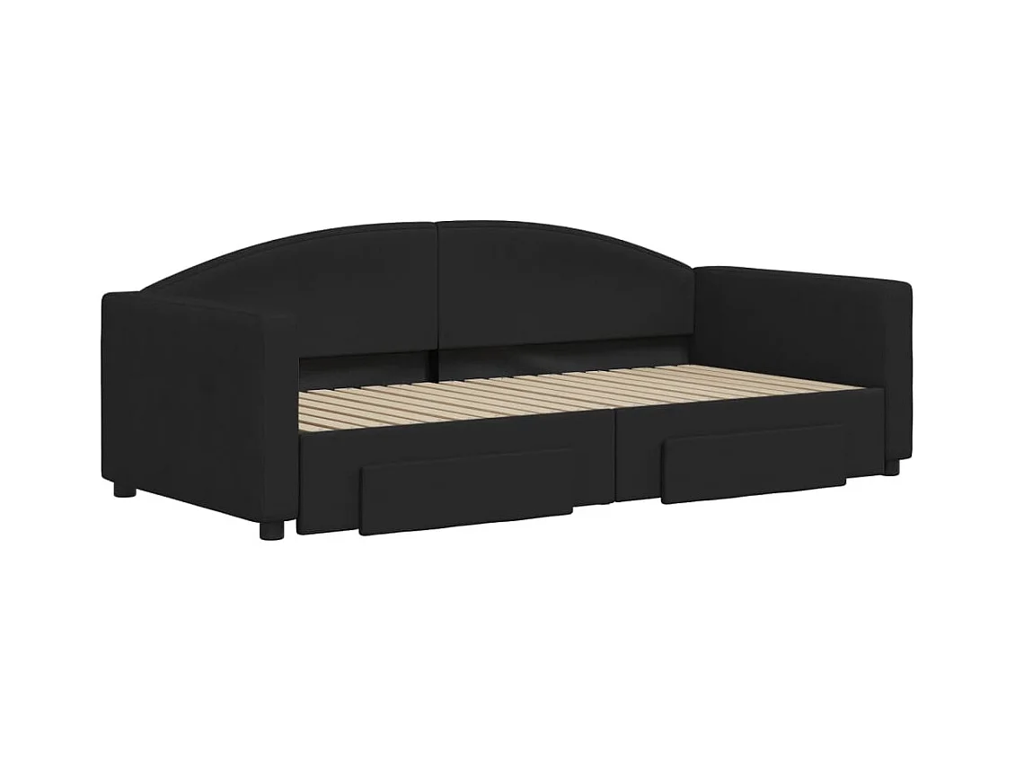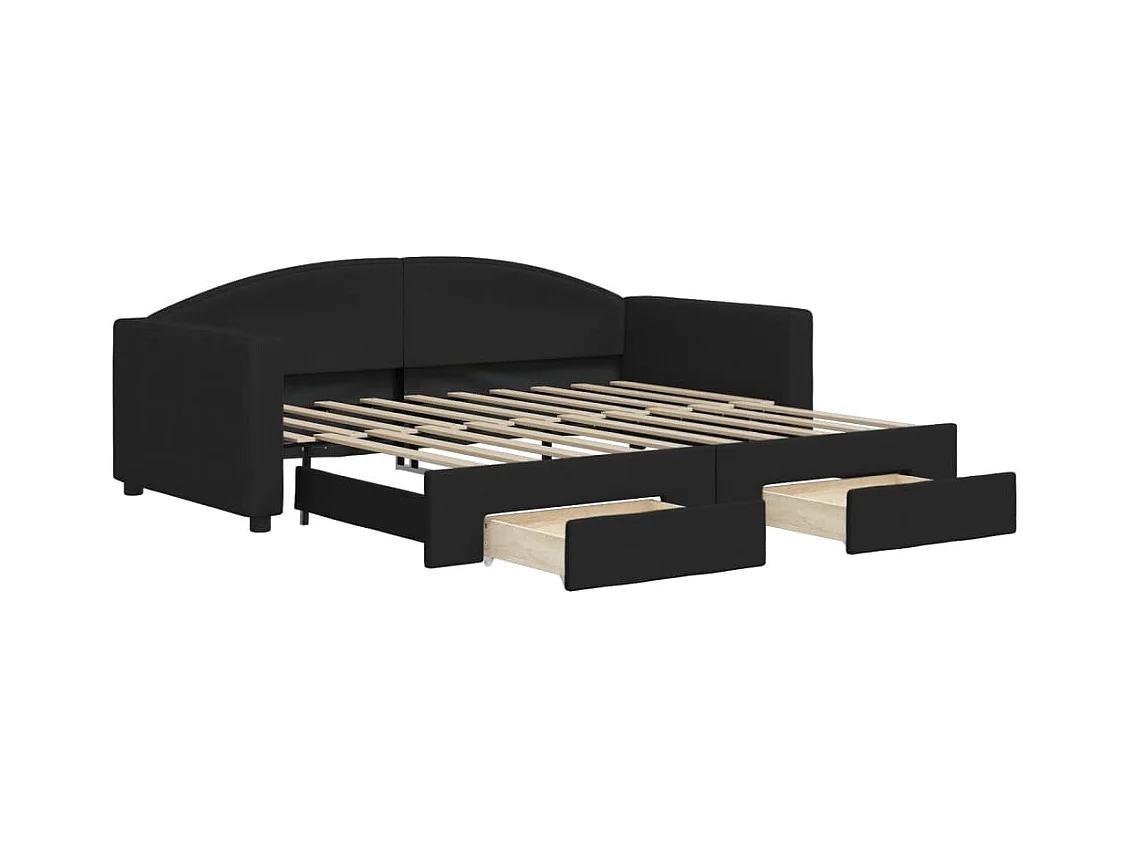 Slaapbank met onderschuifbed en lades 90x190 cm stof zwart