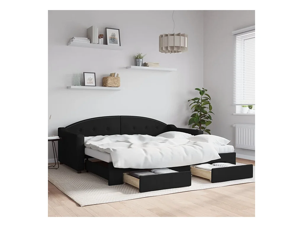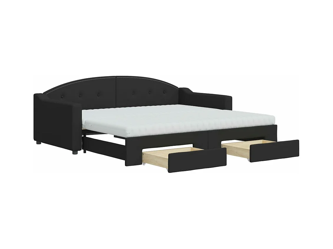 Slaapbank met onderschuifbed en lades 90x190 cm stof zwart