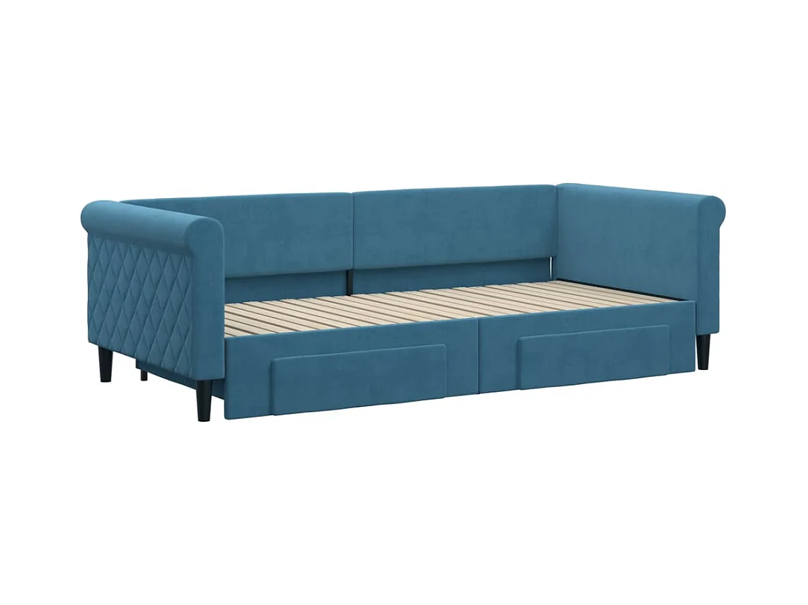 Slaapbank met onderschuifbed en lades 90x200 cm fluweel blauw