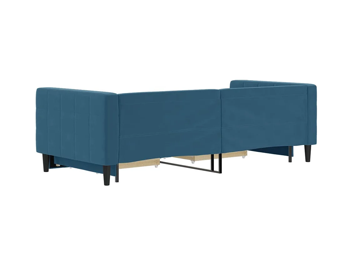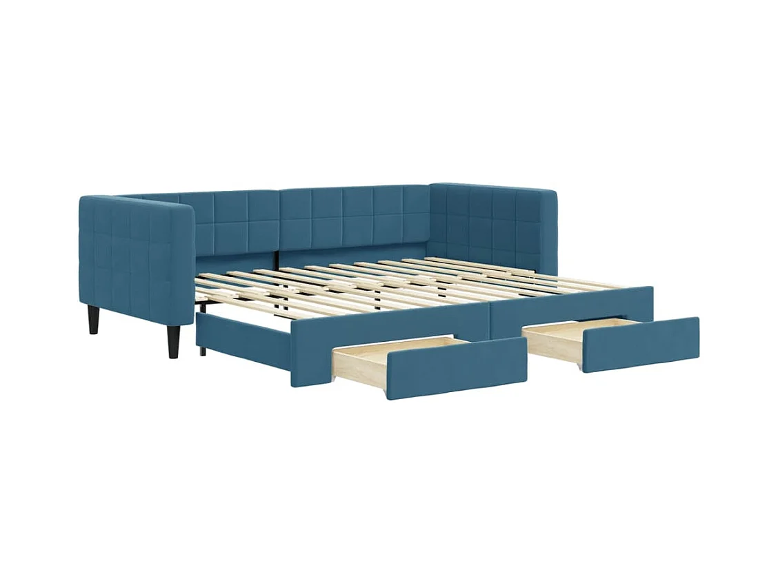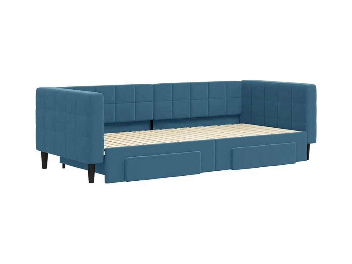 Slaapbank met onderschuifbed en lades 90x200 cm fluweel blauw