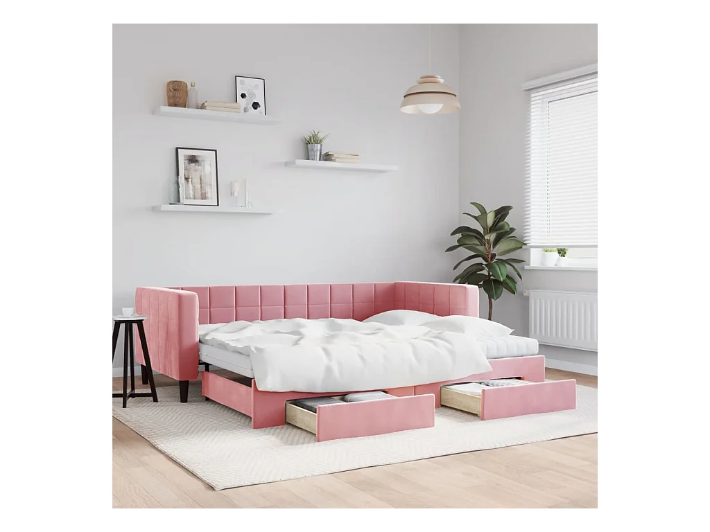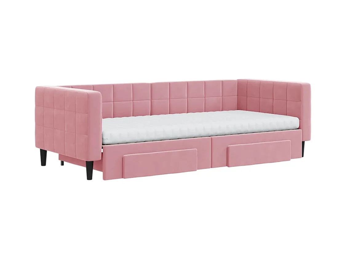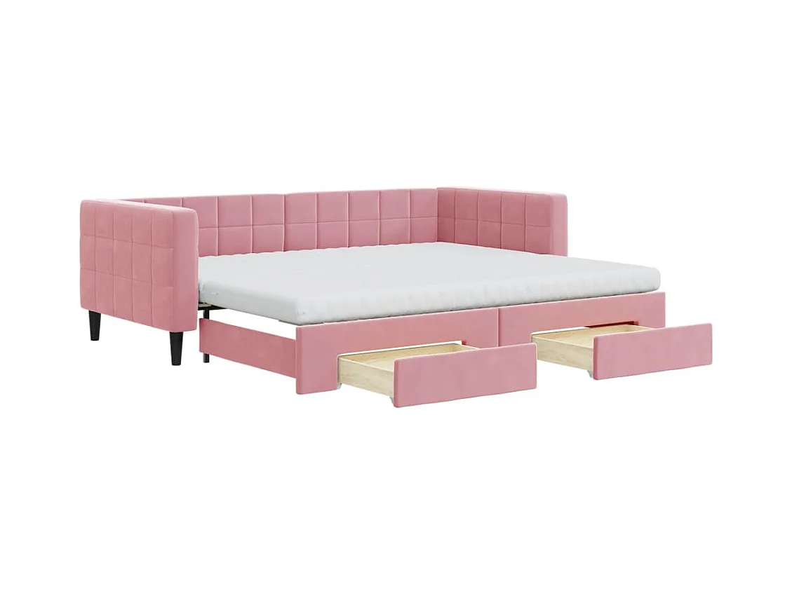 Slaapbank met onderschuifbed en lades 90x200 cm fluweel roze
