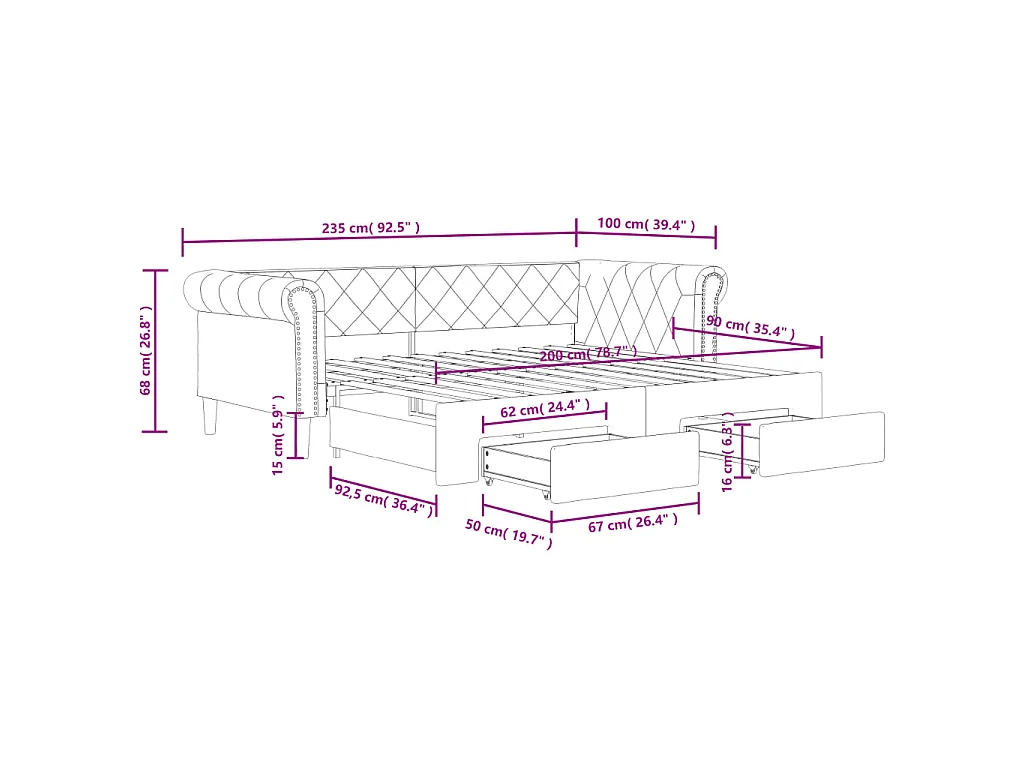 Slaapbank met onderschuifbed en lades 90x200 cm kunstleer zwart