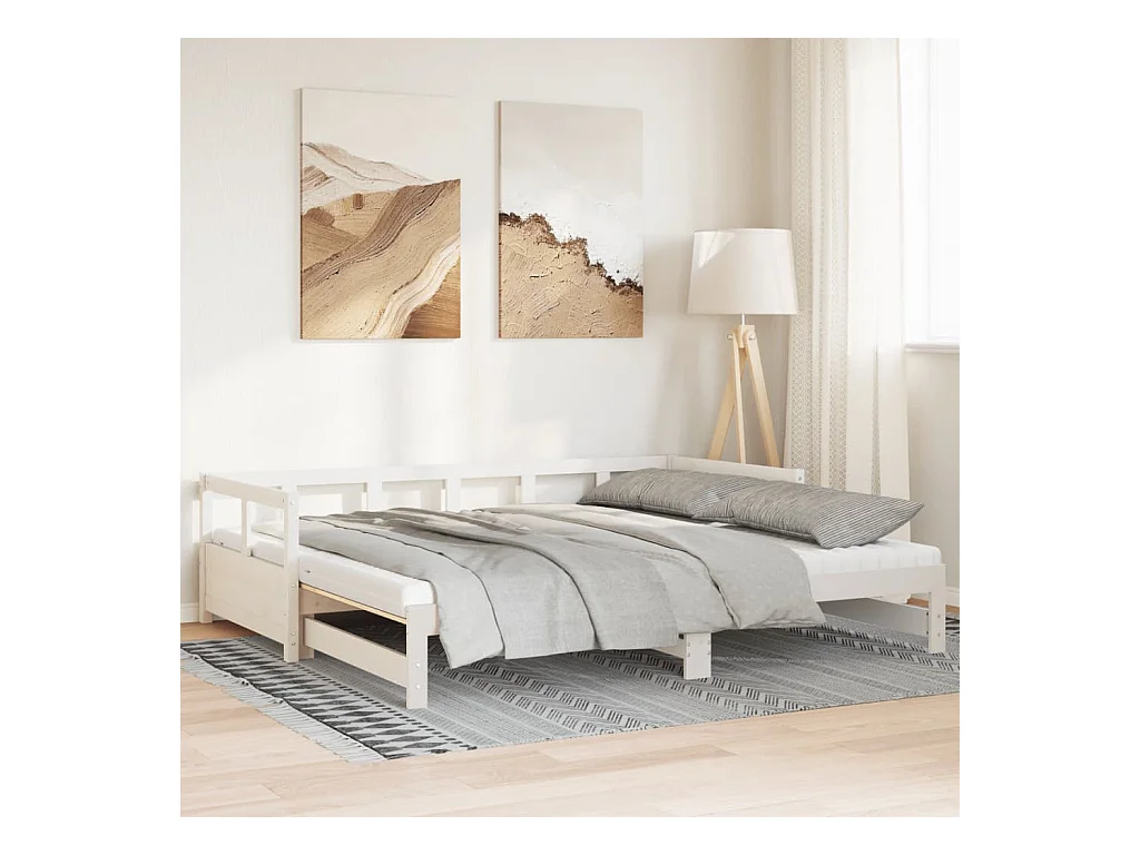 Slaapbank uitschuifbaar massief grenenhout wit 2x(80x200) cm