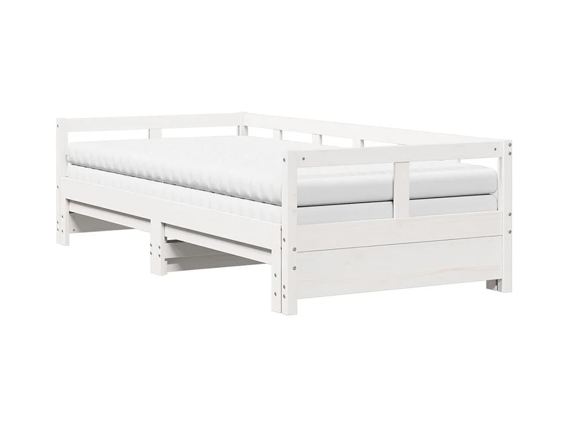 Slaapbank met onderschuifbed en matras 80x200 cm grenenhout wit