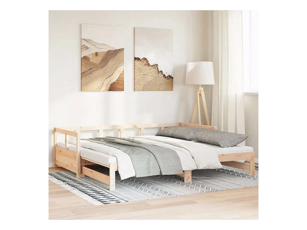 Slaapbank uitschuifbaar massief grenenhout 2x(90x200) cm