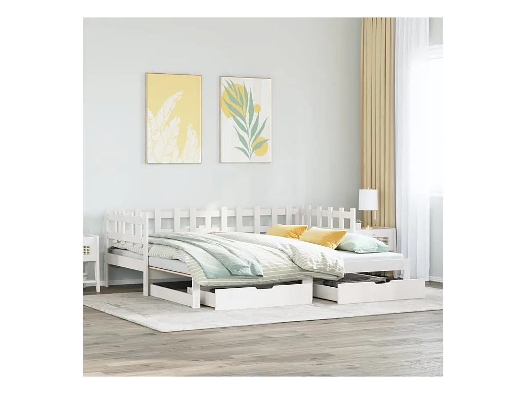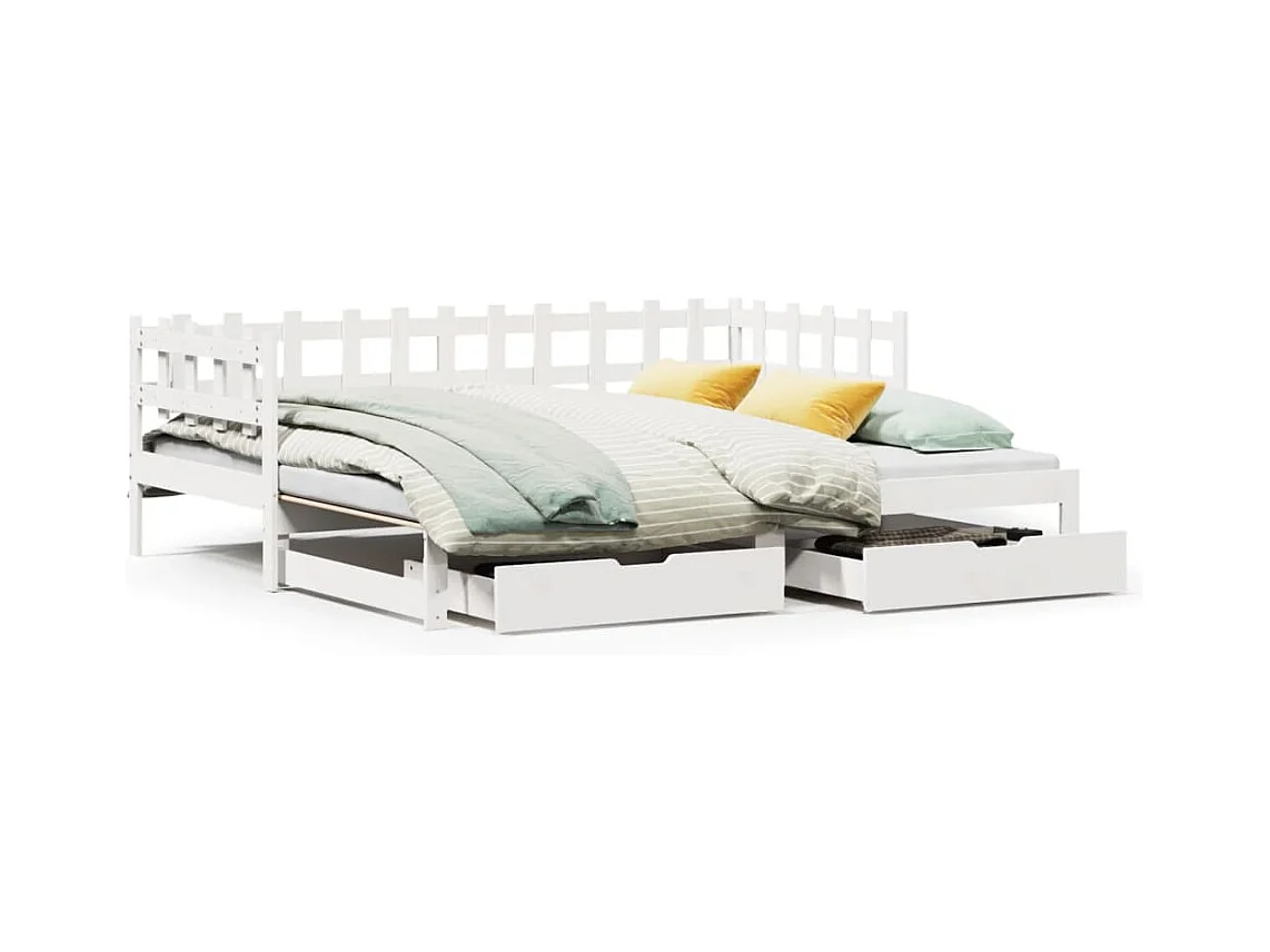 Slaapbank met onderschuifbed/lades zonder matras 90x190 cm wit