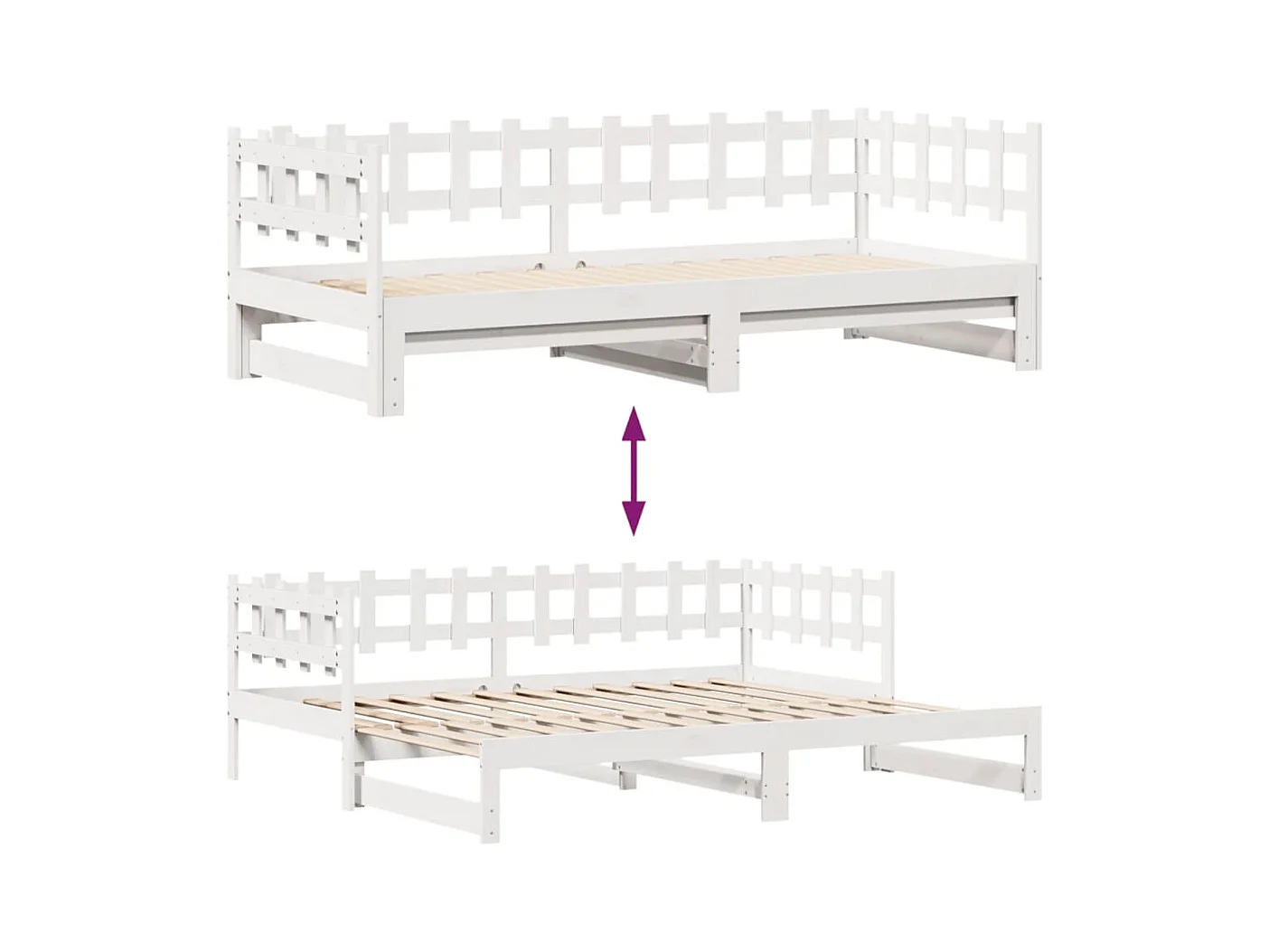 Slaapbank met onderschuifbed 90x190 cm massief grenenhout wit