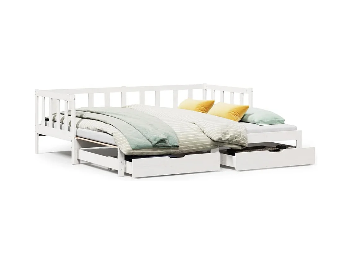 Slaapbank met onderschuifbed/lades zonder matras 90x190 cm wit