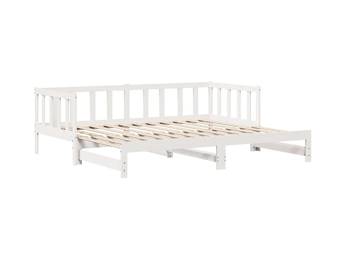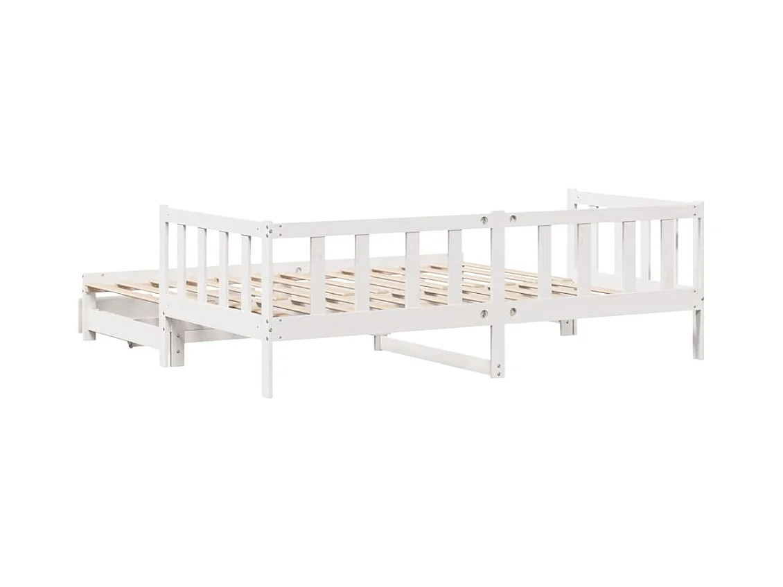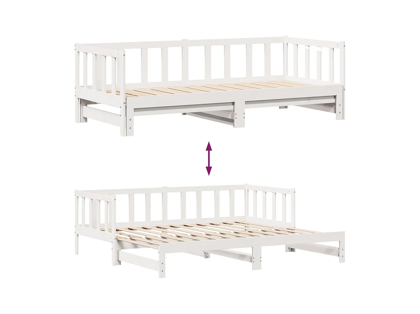 Slaapbank met onderschuifbed 90x190 cm massief grenenhout wit
