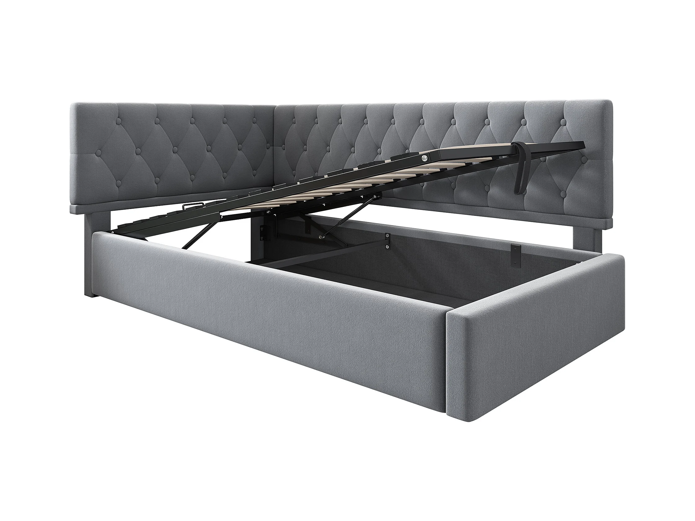 Slaapbank met opbergruimte 90×190 cm - met fluweel stof - met lattenbodem - grijs (zonder matras)