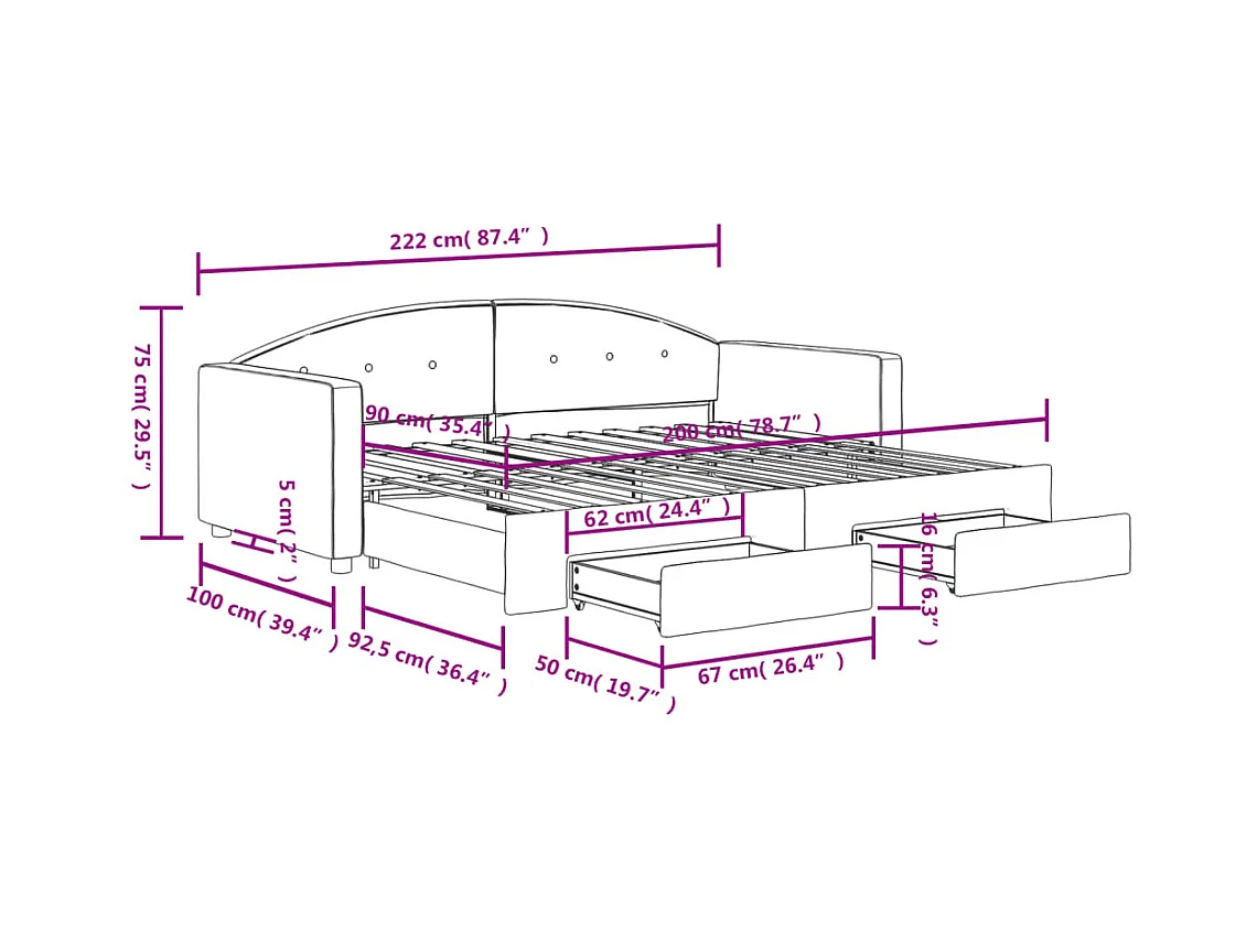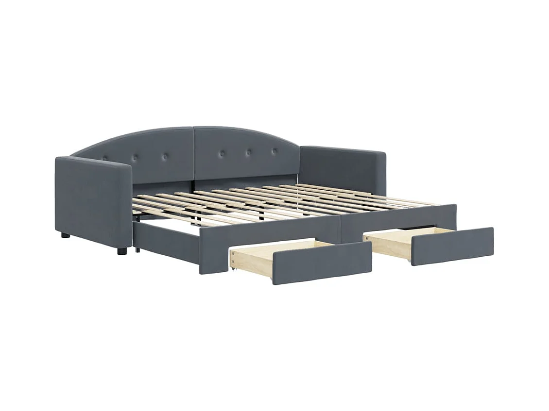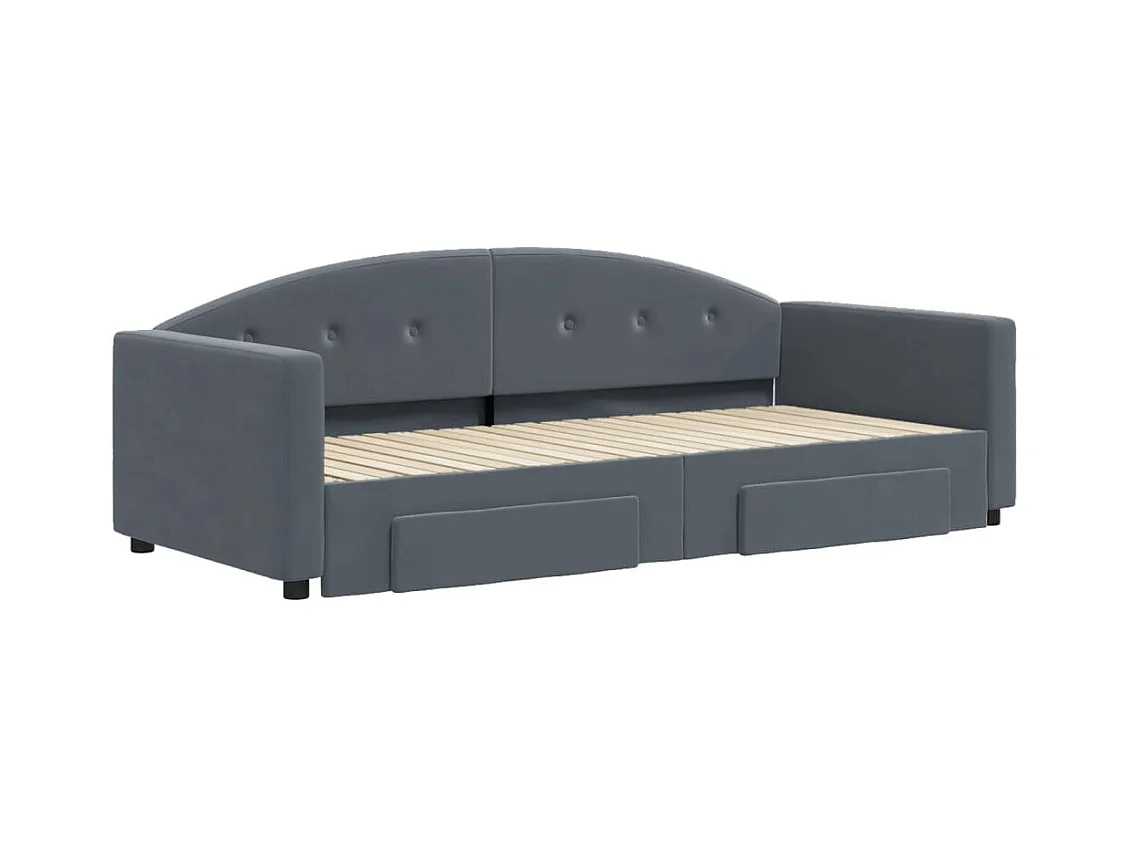Slaapbank onderschuifbed en lades 90x200 cm fluweel donkergrijs