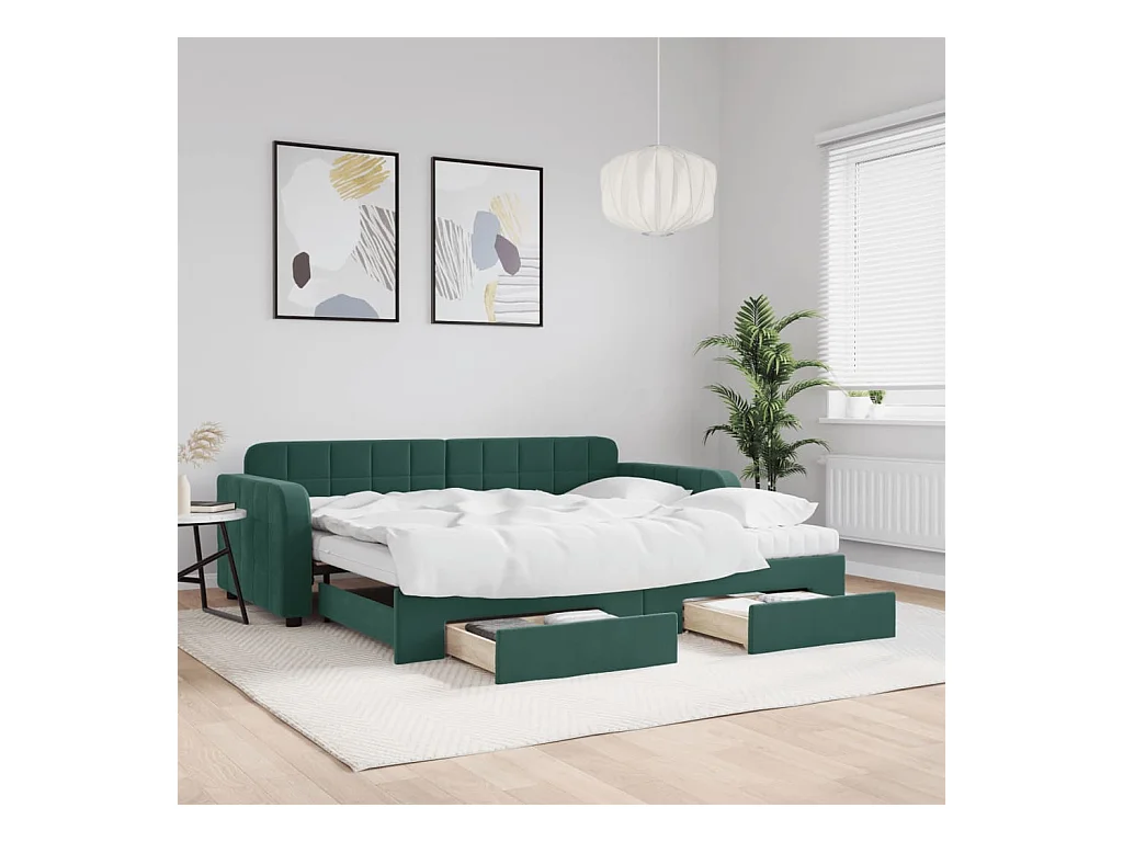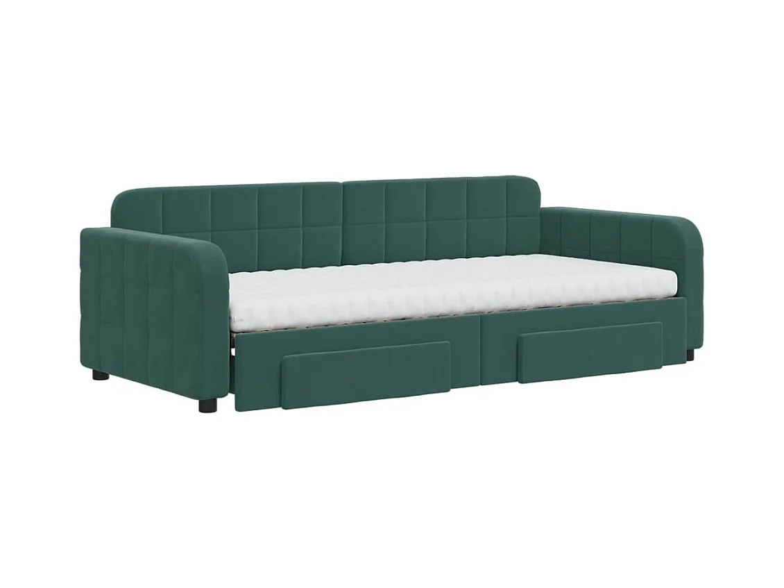 Slaapbank onderschuifbed en lades 90x200 cm fluweel donkergroen