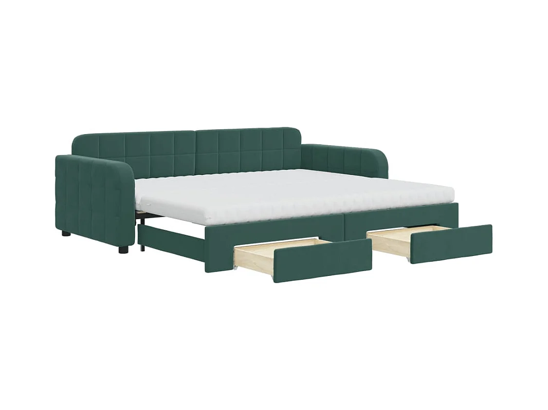 Slaapbank onderschuifbed matrassen 90x200cm fluweel donkergroen