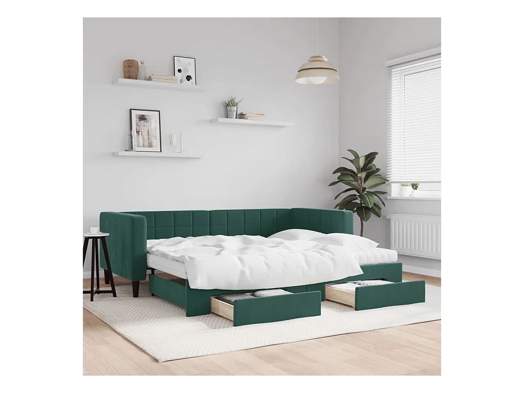 Slaapbank onderschuifbed en lades 90x200 cm fluweel donkergroen