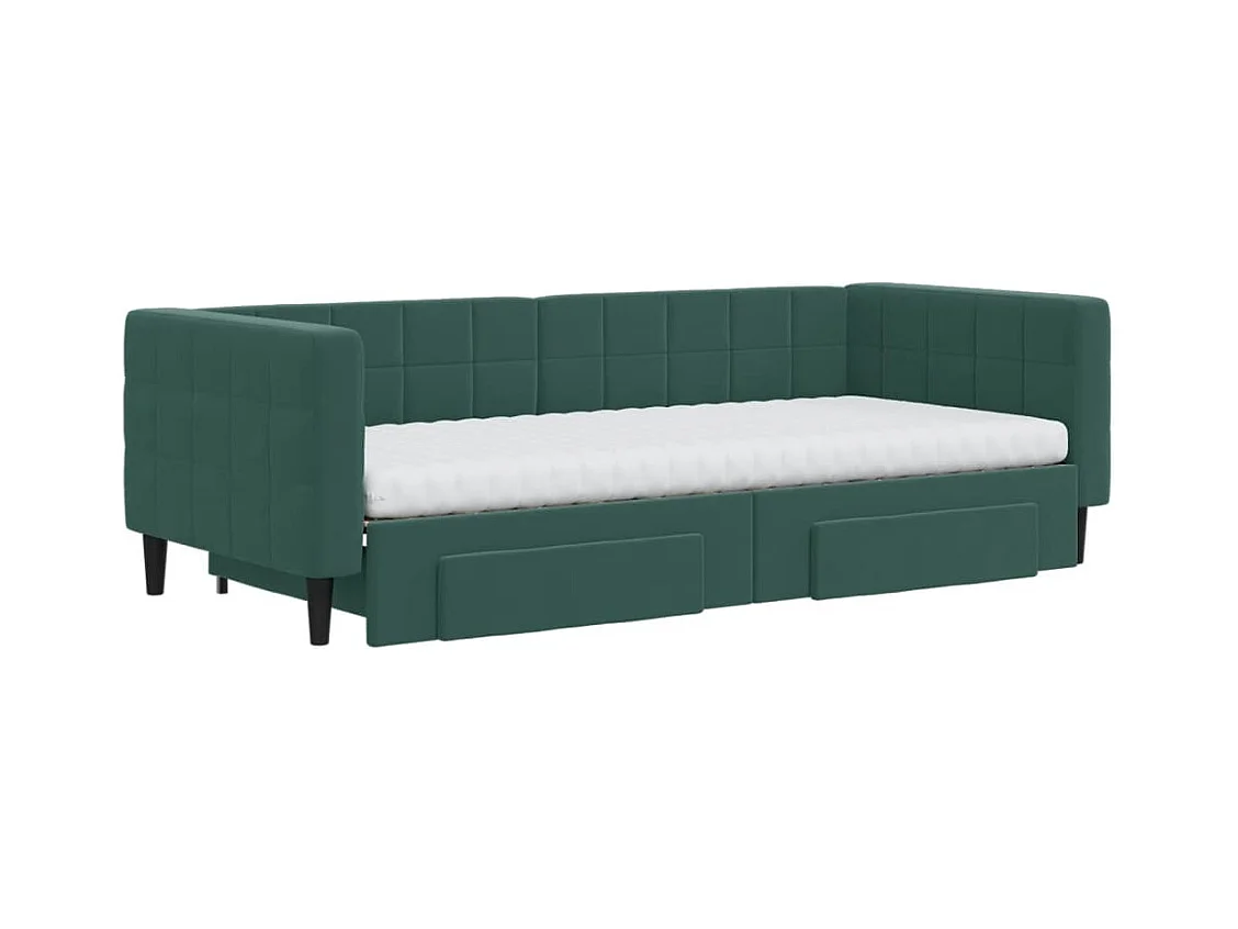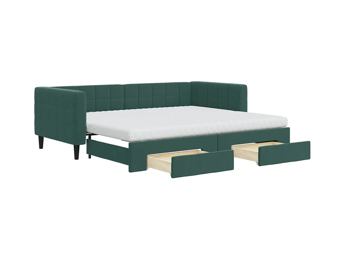 Slaapbank onderschuifbed matrassen 90x200cm fluweel donkergroen