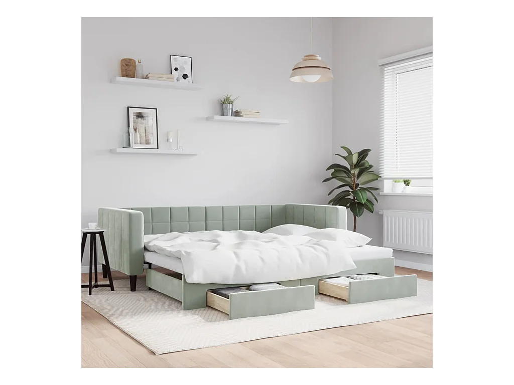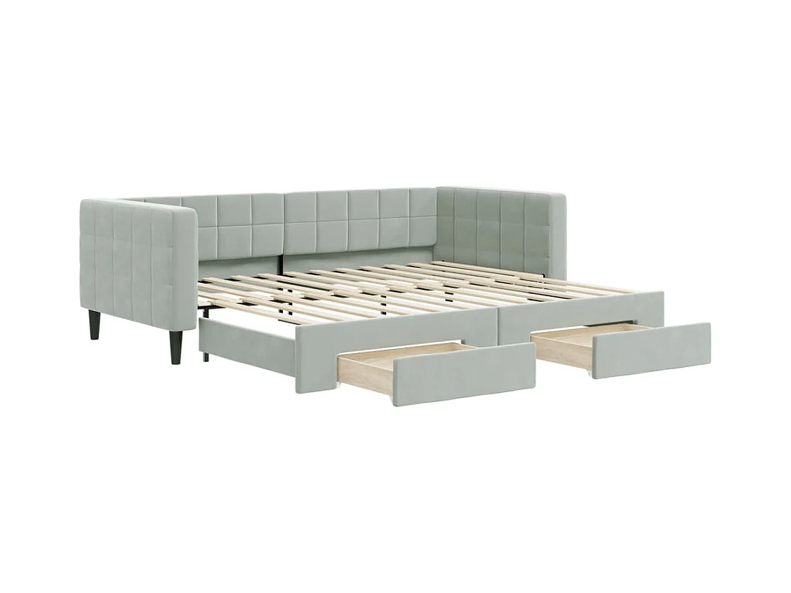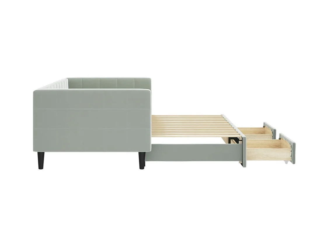 Slaapbank onderschuifbed en lades 90x200 cm fluweel lichtgrijs