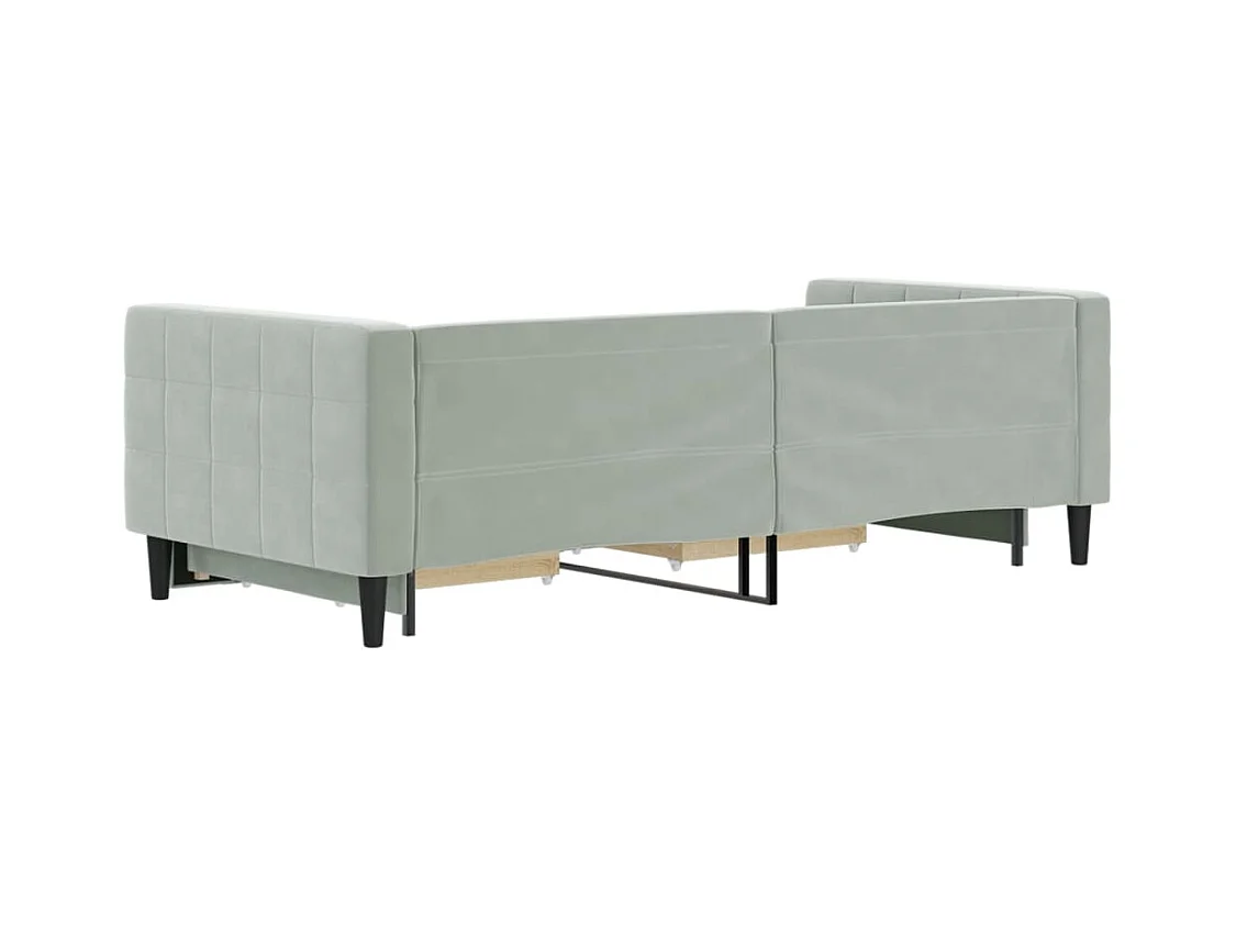 Slaapbank met onderschuifbed 90x200 cm fluweel lichtgrijs