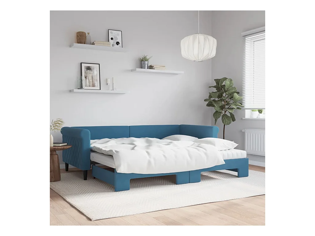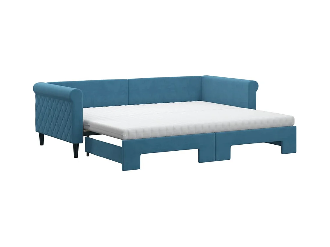 Slaapbank onderschuifbed en matrassen 90x200 cm fluweel blauw