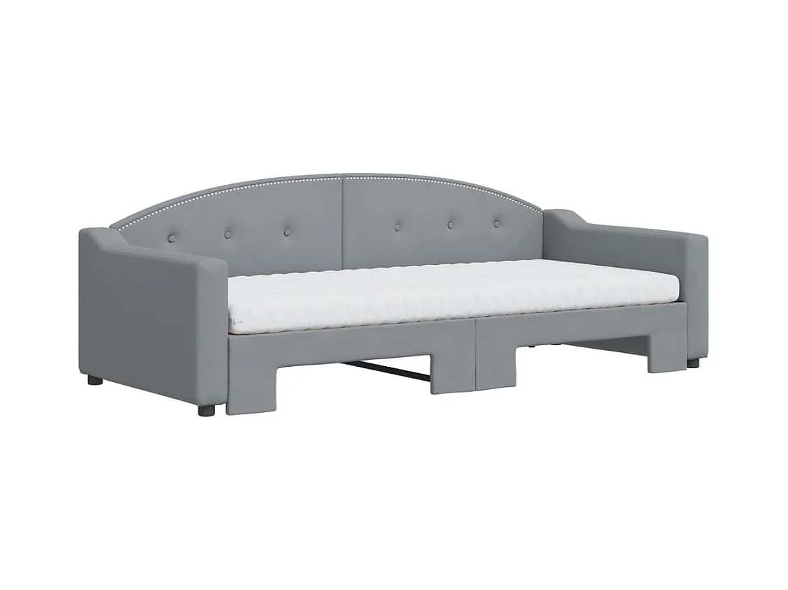 Slaapbank onderschuifbed en matrassen 90x200 cm stof lichtgrijs