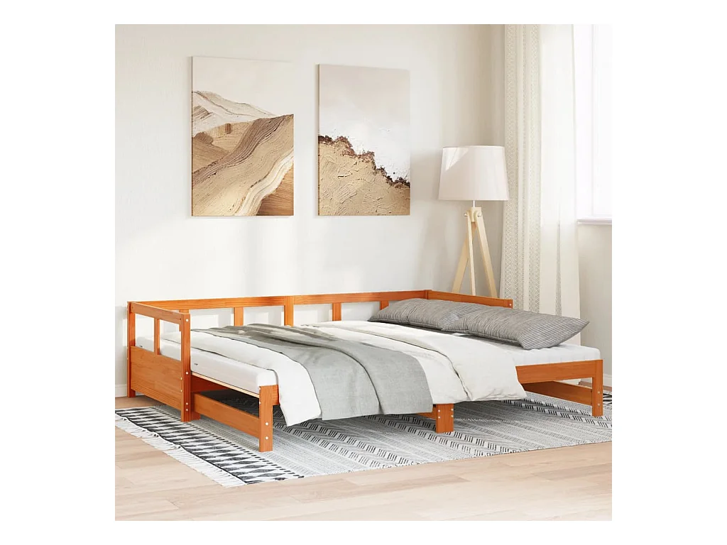 Slaapbank uitschuifbaar massief grenenhout 2x(90x200) cm