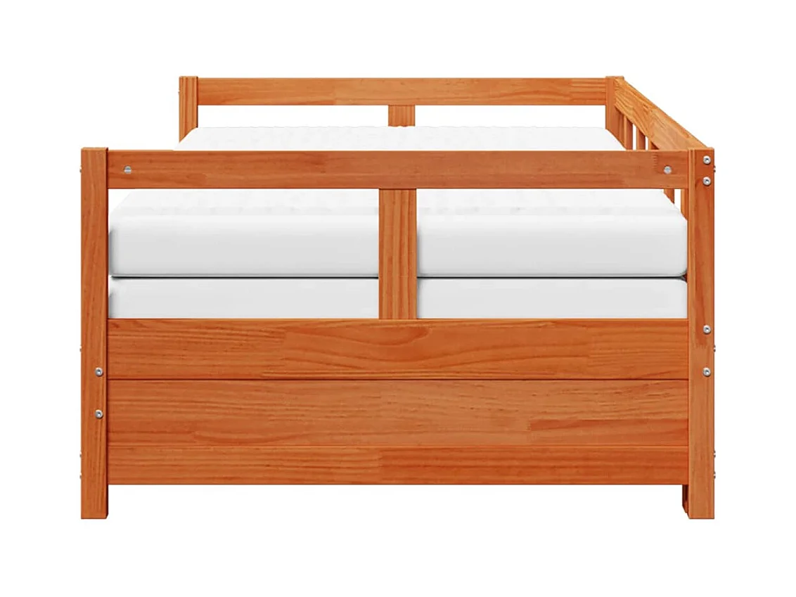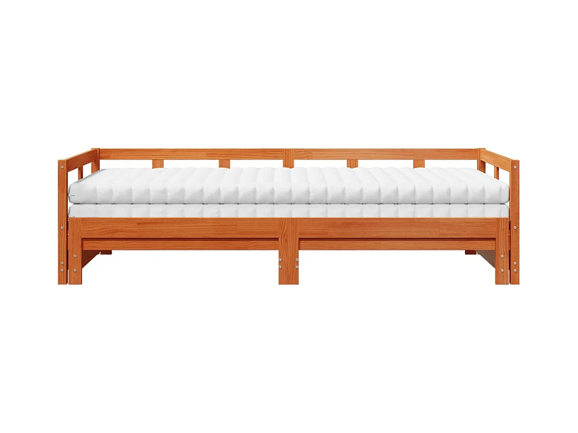 Slaapbank onderschuifbed matras 90x200 cm grenenhout wasbruin