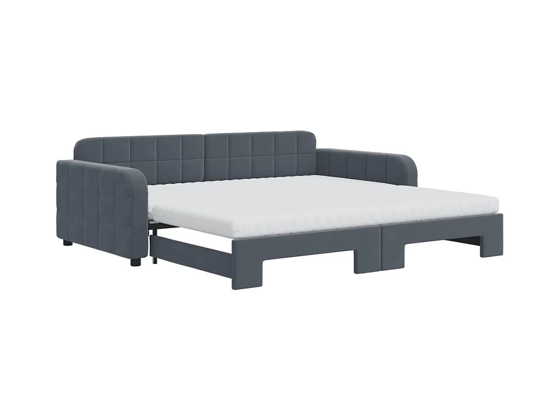 Slaapbank onderschuifbed matrassen 100x200cm fluweeldonkergrijs