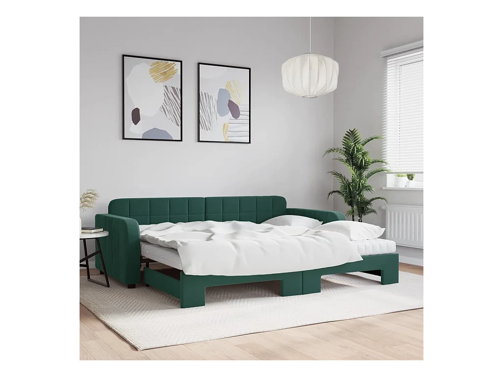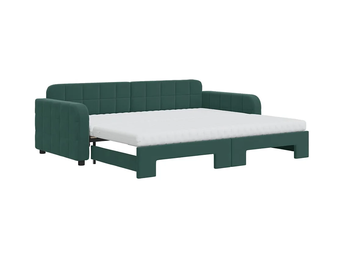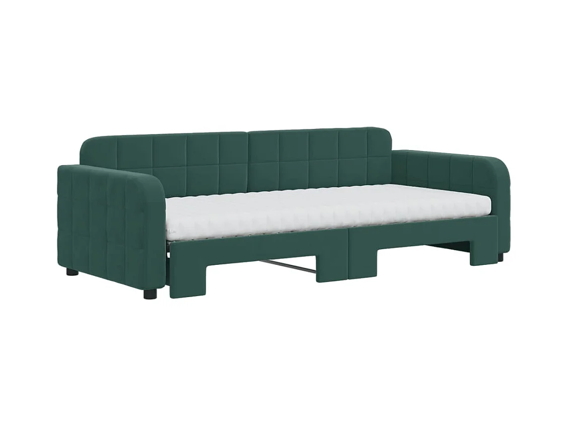 Slaapbank onderschuifbed matrassen 90x200cm fluweel donkergroen