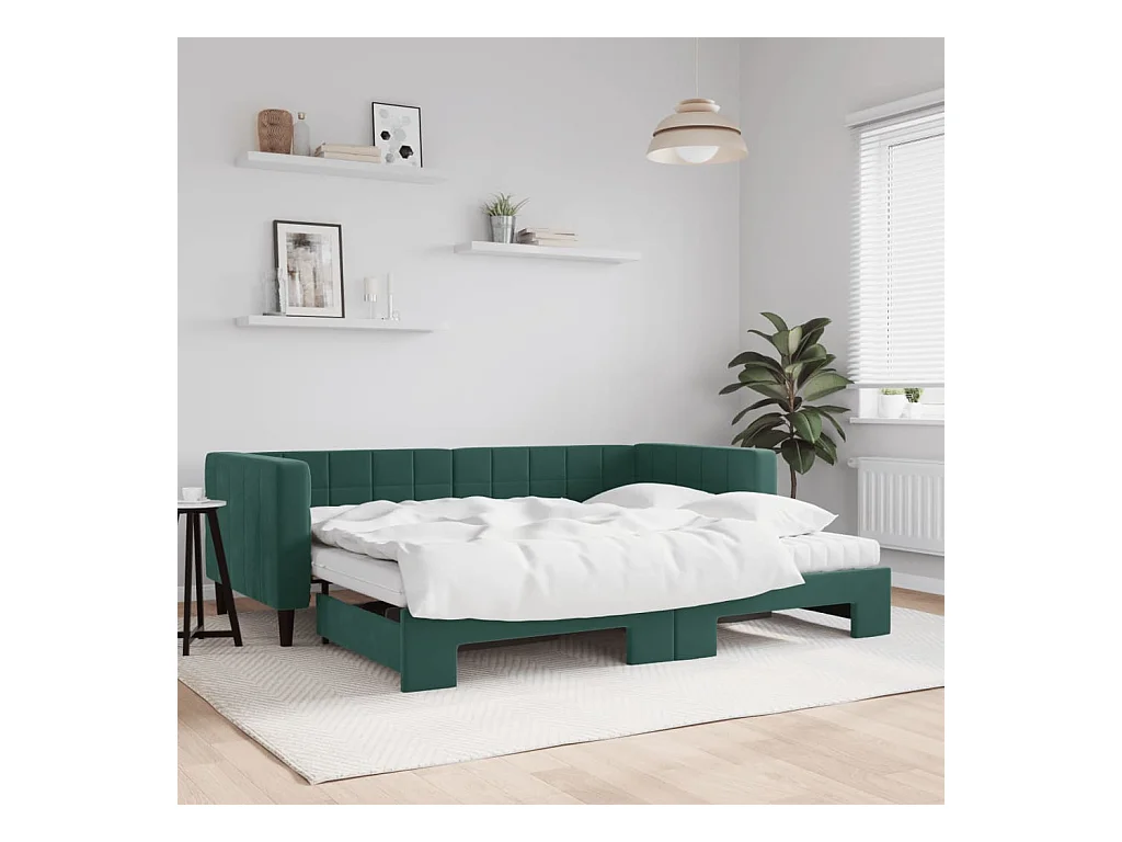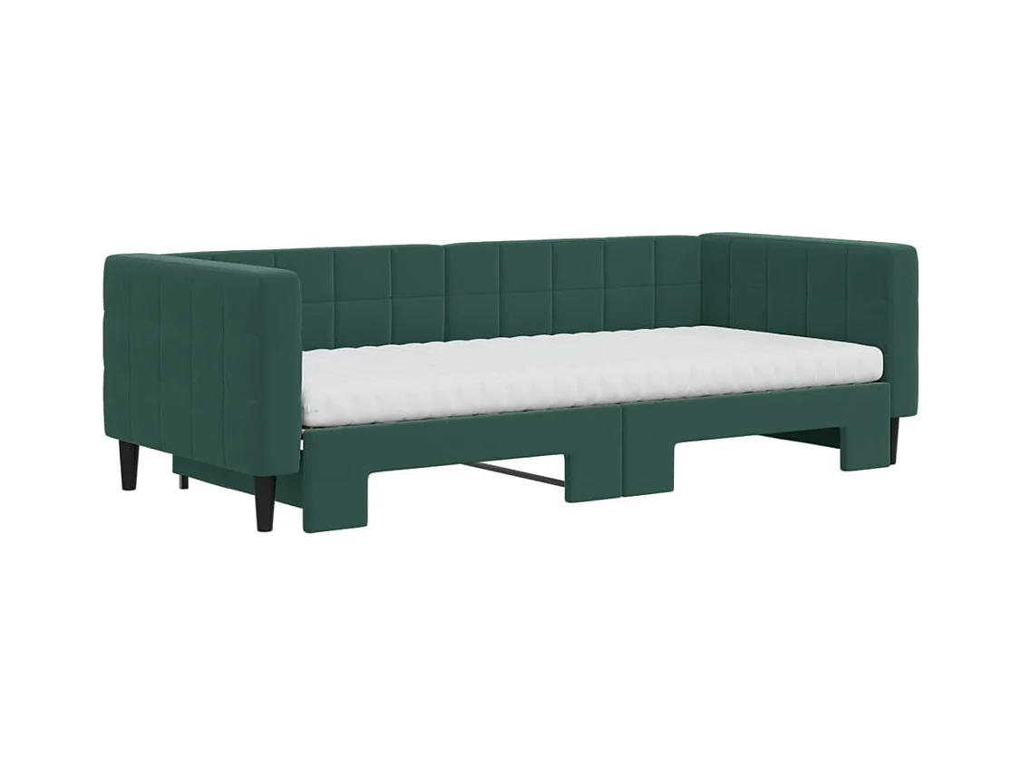 Slaapbank onderschuifbed matrassen 90x200cm fluweel donkergroen