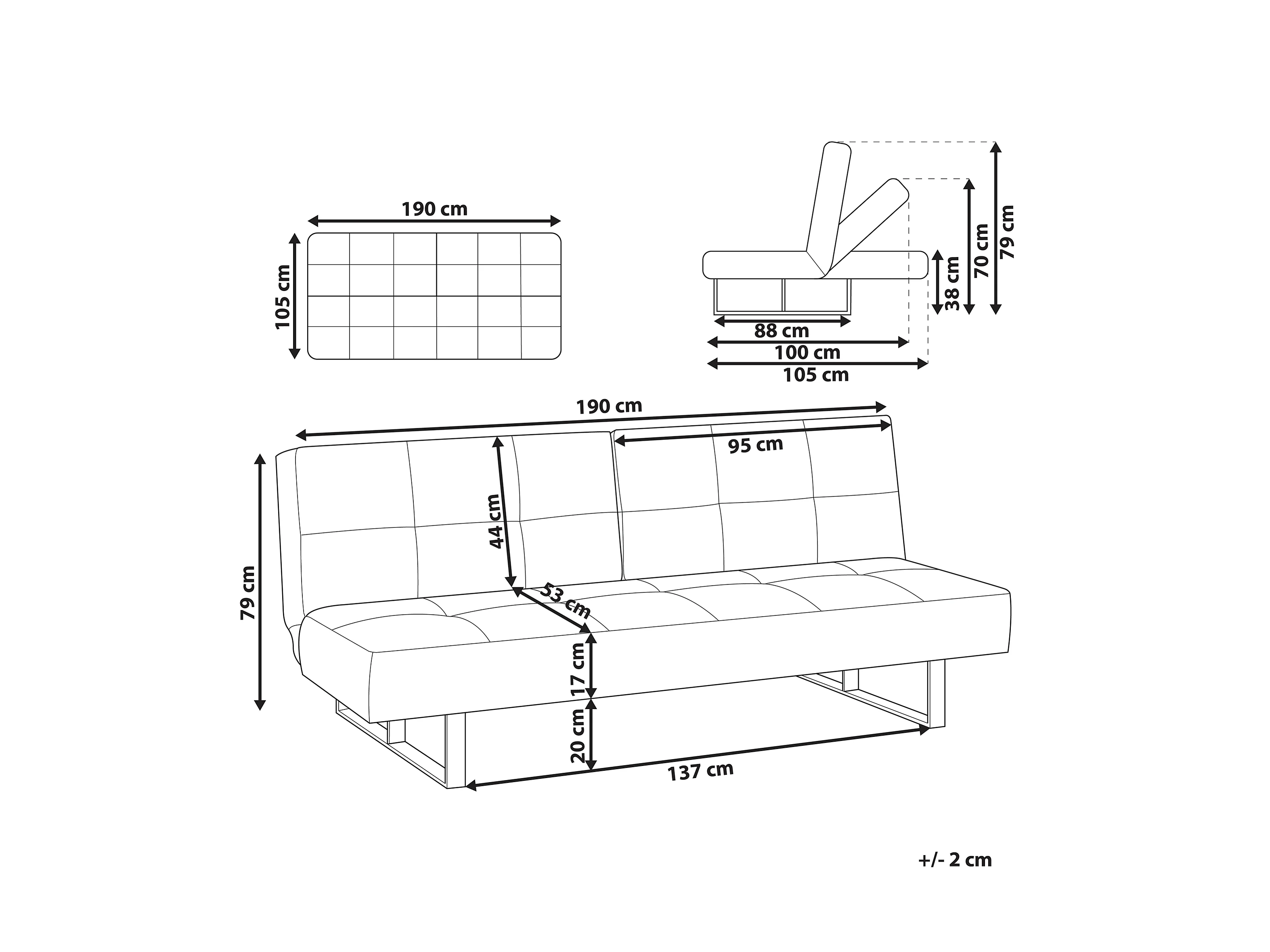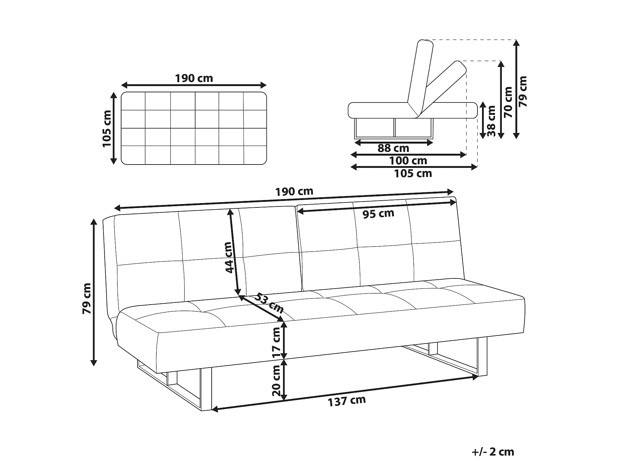 Slaapbank DUBLIN Stof Lichtblauw 3-zitter