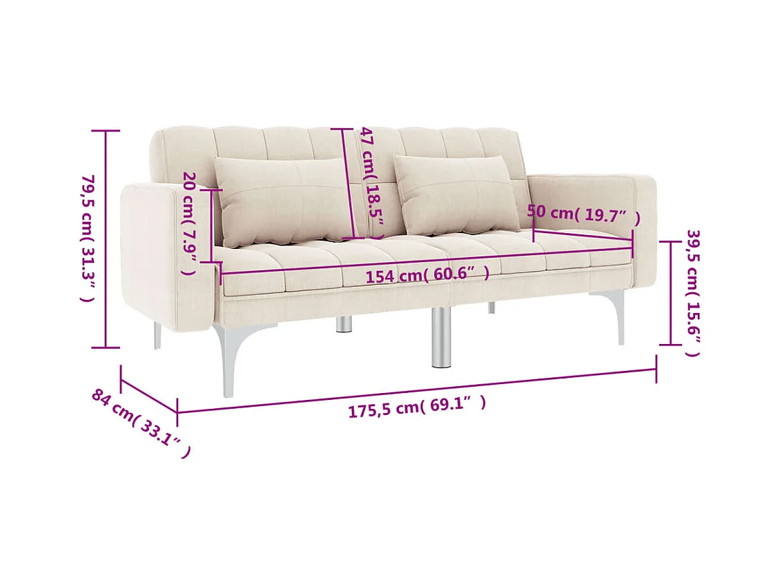 Tuinbankkussens 2 st 180x50x7 cm stof gemêleerd crèmekleurig
