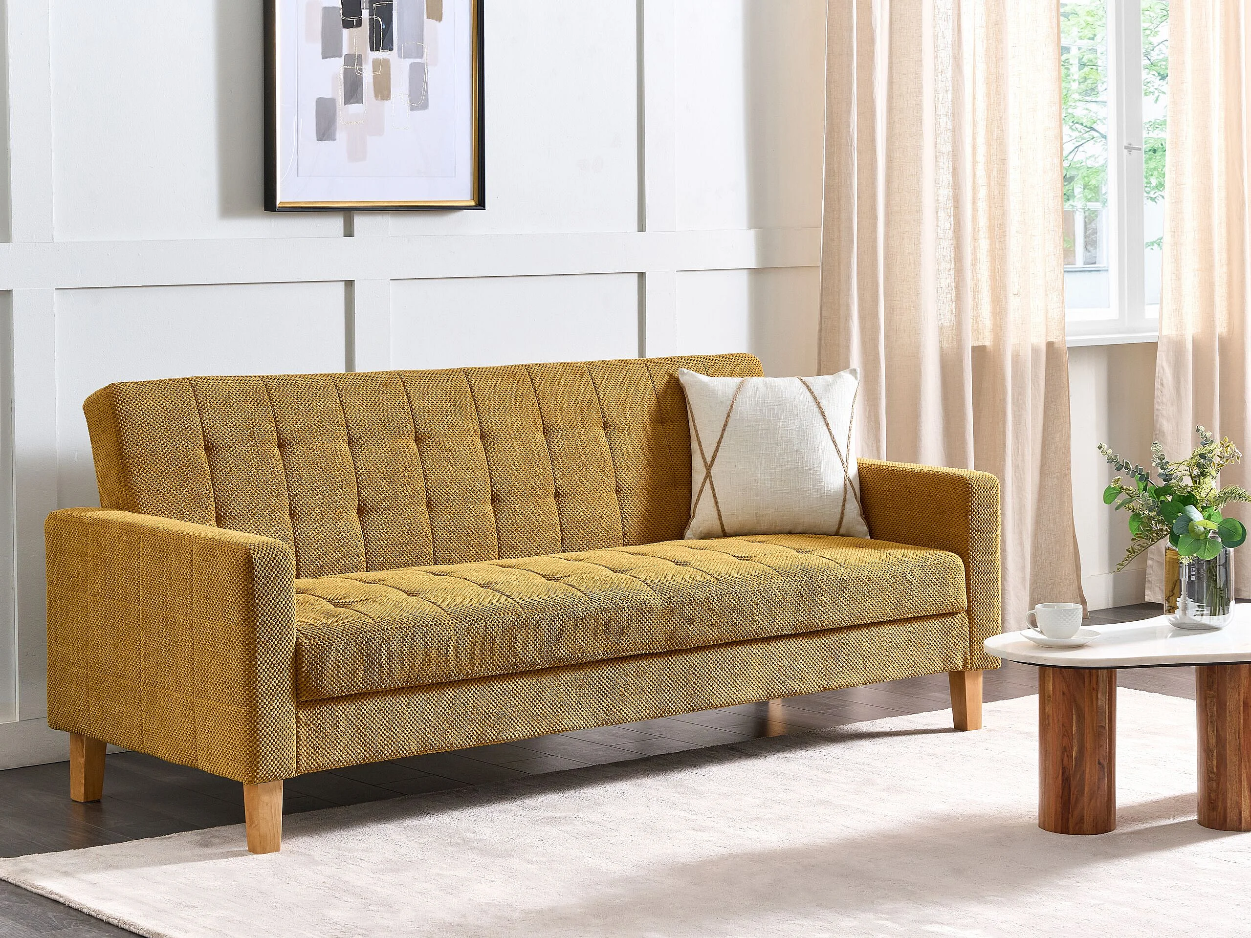Slaapbank VEHKOO Stof Mosterdgeel 3-zitter