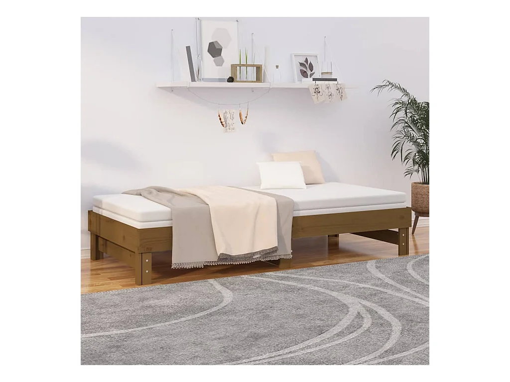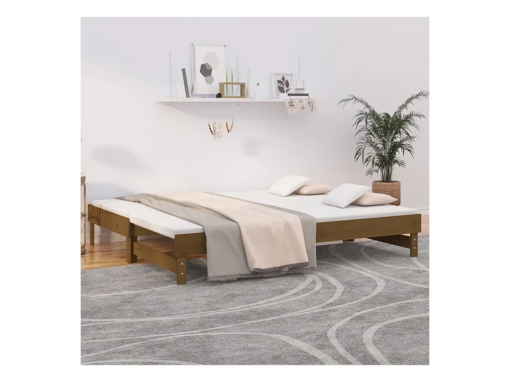Slaapbank uitschuifbaar 2x(80x200) cm grenenhout honingbruin