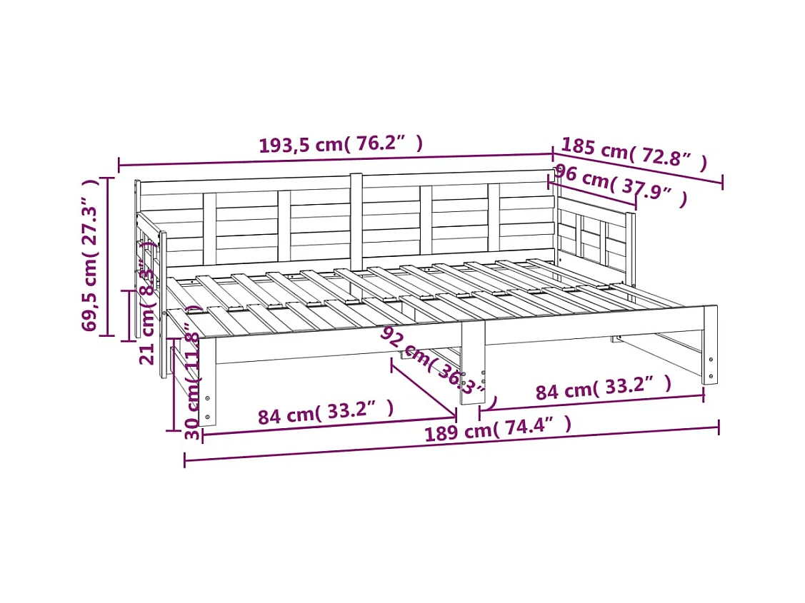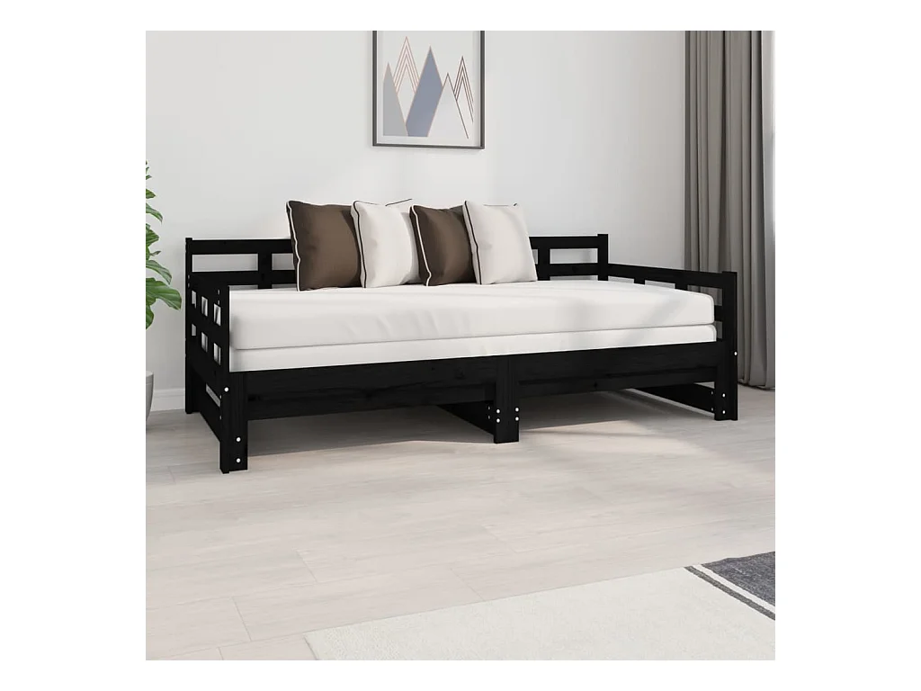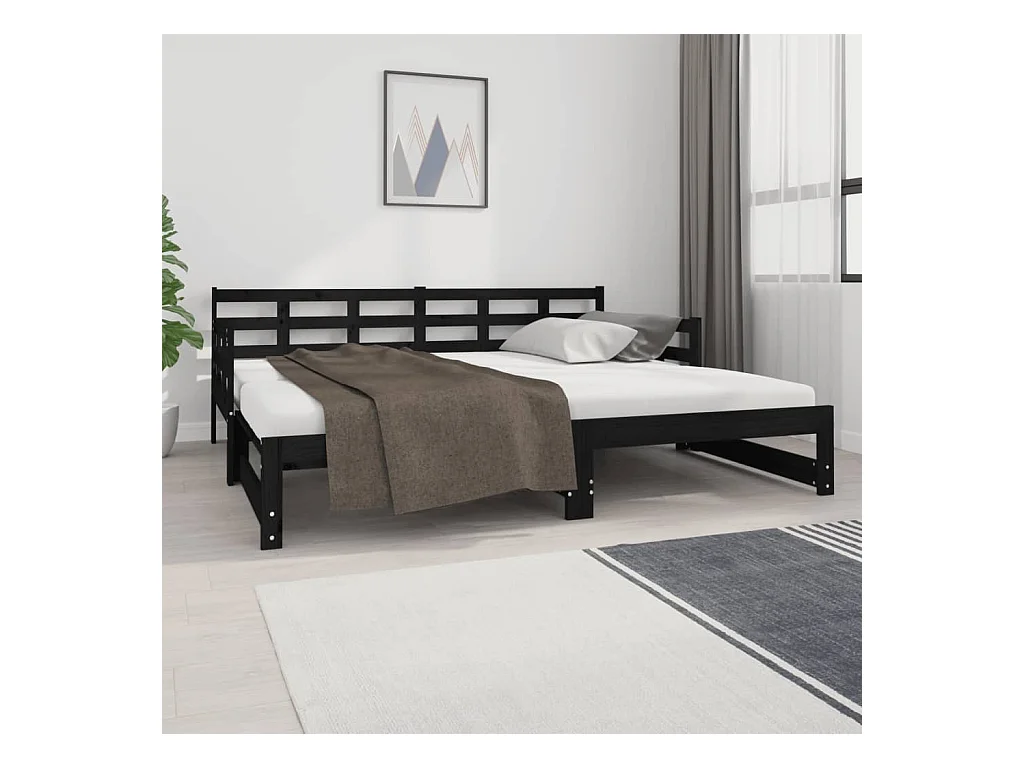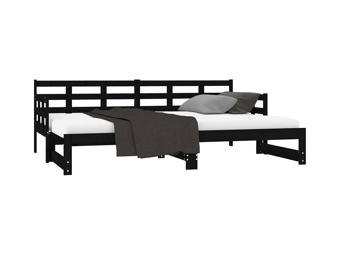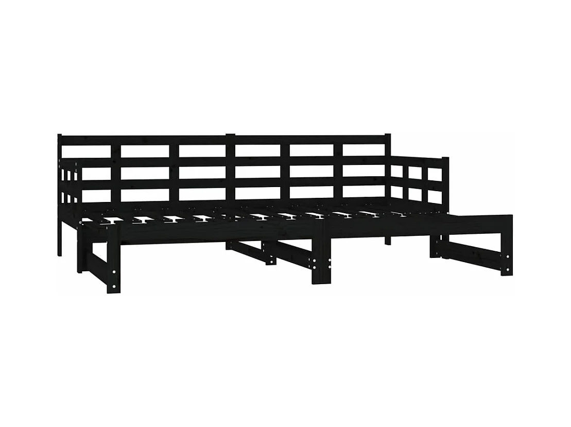 Slaapbank uitschuifbaar massief grenenhout zwart 2x(90x190) cm