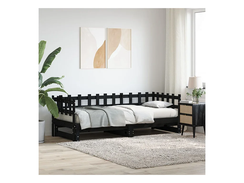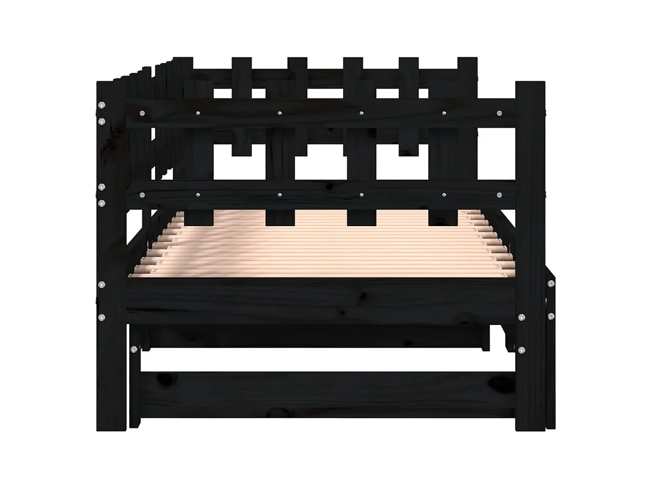 Slaapbank met onderschuifbed 90x200 cm massief grenenhout zwart