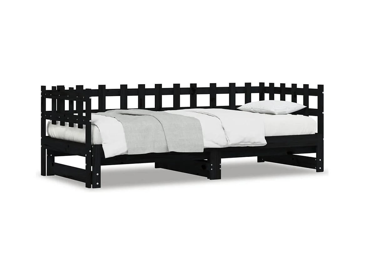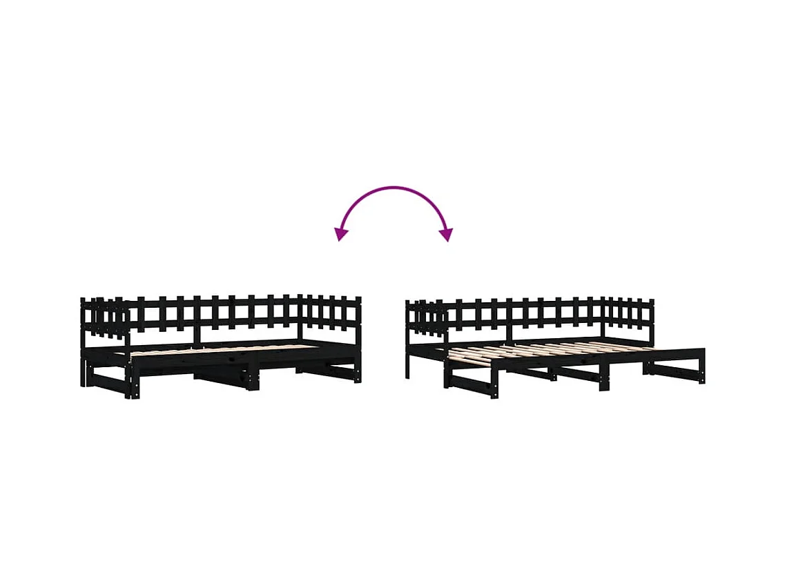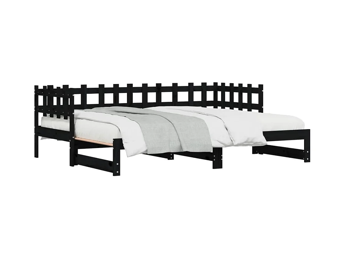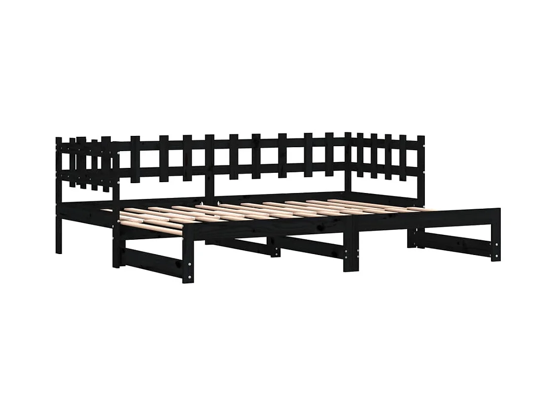 Slaapbank uitschuifbaar massief grenenhout zwart 2x(90x200) cm